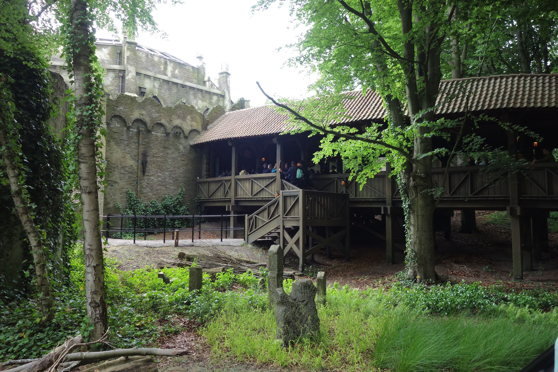 Bereits von Weiten sorgt die Holzachterbahn "Magnus Colossus" für Aufsehen, denn die an der höchsten Stelle des Parks errichtete Achterbahn ziert mitsamt einem überdimensionellen Werbebanner ... |