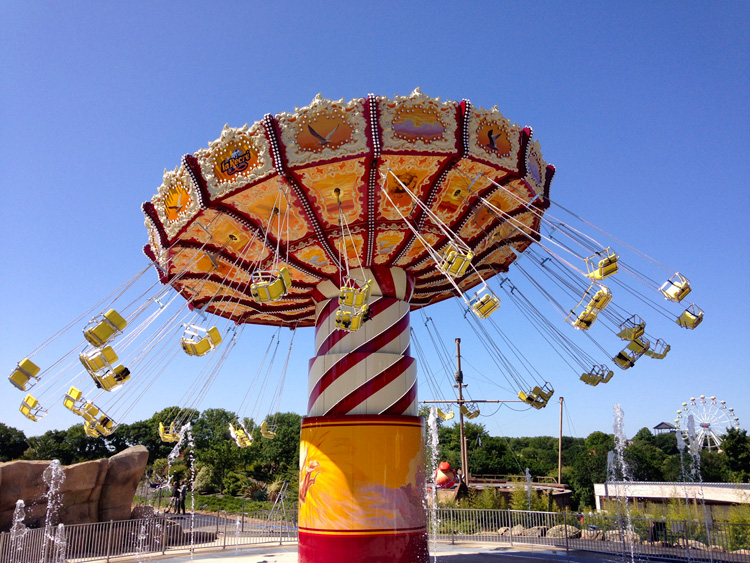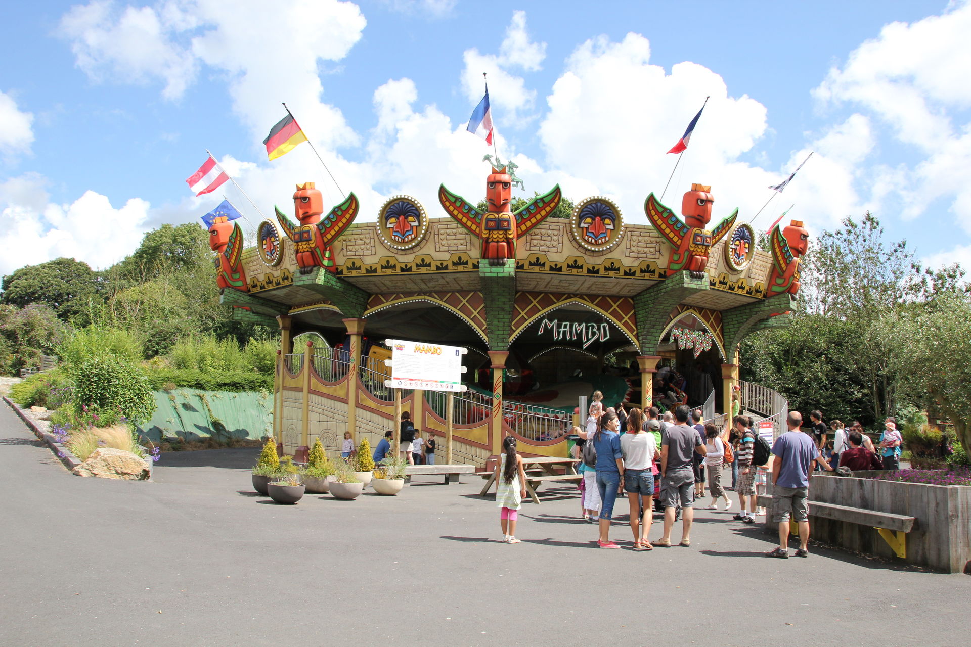 In diesem Jahr geht es im kleinen bretonischen Freizeitpark La Récré des 3 Curés wortwörtlich rund! Die aus dem Bobbejaanland übernommene Schlickerbahn "Mambo" nimmt die Fahrgäste mit auf ein rasantes Abenteuer bei den alten Azteken. Mit voller Kraft voraus geht es über Berg und Tal, wobei die Gondeln für jeweils zwei Passagiere frei zur Seite hin ausschwingen können. Und als ob das noch nicht genug wäre, wird nach der Hälfte der Fahrzeit die Fahrtrichtung gewechselt: Rückwärts über die kleinen Hügel zu "fliegen" ist dann ein ganz besonderes Erlebnis! Viele kleine gestalterische Details der Thematisierung heben die Anlage in La Récré des 3 Curés von anderen Modellen dieses Typs ab und machen aus dem Karussell einen wahren Publikumsmagneten.