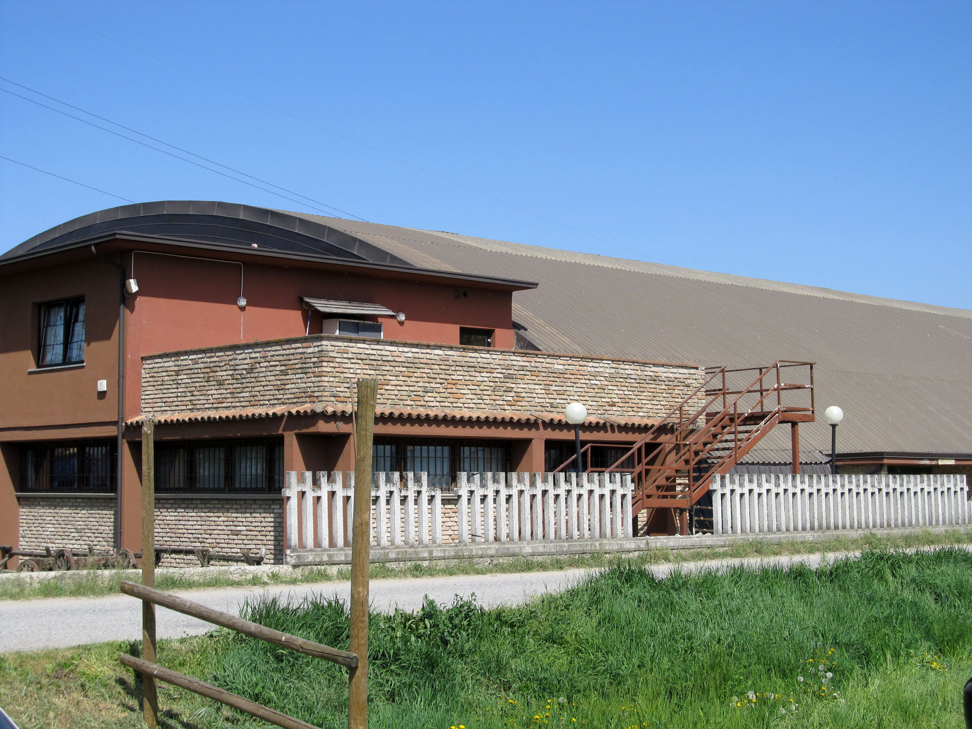 Bereits im Eingangsbereich ist das Cowboyland etwas anders als die meisten anderen Freizeitparks. Der vordere Bereich des Geländes ist nämlich frei zugänglich, ohne dass man Eintritt bezahlen muss. In diesem Bereich fällt als erstes die große Veranstaltungshalle ins Auge. In diesem lang gezogenen Gebäude mit dem halbrunden Dach findet an einigen Tagen eine Rodeo- und Westernshow statt. Tickets dazu können in Kombination mit dem Eintrittspreis zum Park erworben werden. Aber auch andere Veranstaltungen, Events und Wettbewerbe werden in der Halle abgehalten, die meisten davon thematisch auch zum Westernthema oder zu Pferden allgemein passend.