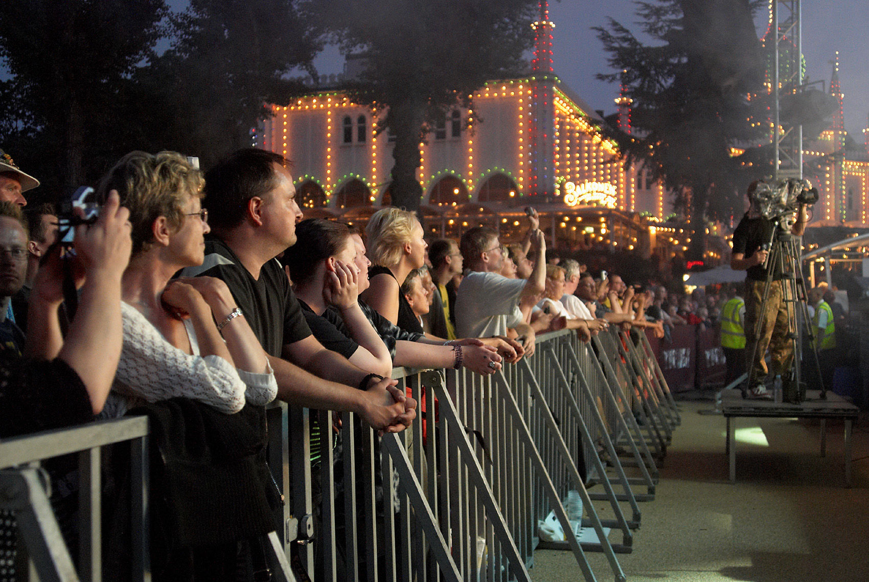 Durch ein besonderes Eintrittssystem - man muss nur einen niedrigen Eintrittspreis, aber dafür die Fahrgeschäfte extra bezahlen - gibt es im Tivoli viele Besucher, die einfach nur spazieren gehen, dort essen oder die dortigen kulturellen Angebote nutzen. In den Sommermonaten stattfindende Open Air-Konzerte von weltberühmten Musikern, wie zum Beispiel Sting, The Blood Hound Gang, Ray Charles oder Outlandish, werden teilweise von bis zu 60.000 Besuchern besucht. Diese Konzerte sind wohlgemerkt im niedrigen Eintrittspreis des Tivolis inklusive. Wer mehr an den Achterbahnen und anderen Fahrattraktionen interessiert ist, für den ist das Wristband genau das Richtige. Für das Wristband zahlt man einmalig einen Betrag und kann damit die Fahrgeschäfte des Parks unbegrenzt nutzen. Das Highlight des Parks ist die abendliche Beleuchtung der Parkanlagen, Gebäude und des Sees mit mehreren hunderttausend Lampen. An ausgewählten Abenden gibt es großartige Feuerwerke zu bewundern, welche man auf keinen Fall verpassen sollte.