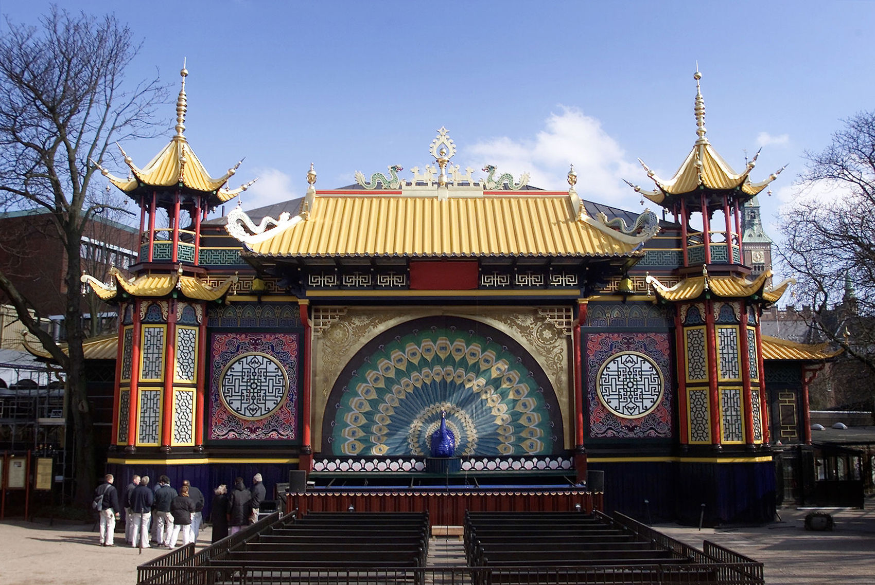 1847 wurde ein altes Theater durch das chinesische Pantomimetheater ersetzt. Die Zuschauer nahmen außerhalb des Gebäudes Platz, während sich die Bühne im Inneren des Gebäudes befand. Der Bühnenvorhang war ein mechanischer Pfauenschwanz. Zu Beginn war das Theater Heimat von italienischen Pantomimen gewesen, die von Giuseppe Casorti in Dänemark eingeführt worden waren. Diese Tradition, die der italienischen „Commedia dell Arte“ angehörte, wurde am Leben erhalten. Beispiele für die mitwirkenden Charaktere waren: Cassander (der alte Vater), Columbine (seine wunderschöne Tochter), Harlequin (ihr Liebhaber) und ganz speziell der tollpatschige Diener Pierrot. Das Fehlen von gesprochenen Dialogen ist ein Vorteil, welcher den Tivoli heute zu einer internationalen Touristenattraktion macht.