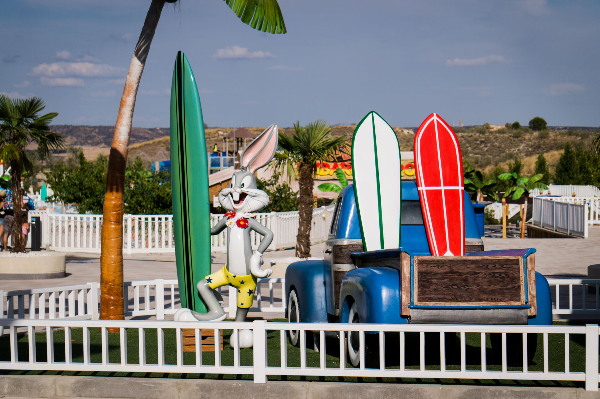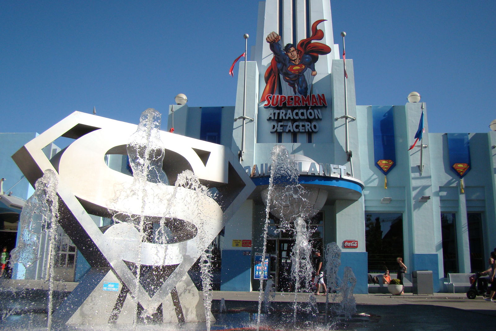 Weiter geht es in den nächsten Parkbereich namens "Super Heroes World". Mit den beiden Achterbahnen "Superman" und "Batman la Fuga" des schweizerischen Premiumherstellers Bolliger & Mabillard wird hier reichlich Action geboten. Vielleicht hat man auch das Glück, sich mit Batman persönlich auf dem "Gotham Plaza" fotografieren zu lassen. Nach den actionreichen Fahrten empfiehlt sich ein Abstecher in den nächsten Themenbereich, um einmal ordentlich nass zu werden. Im "Old West Territory" finden sich dazu gleich zwei Wasserbahnen, nämlich ein Spillwater und ein Flume Ride. Zum Trocknen eignet sich daraufhin die Holzachterbahn "Coaster Express". Für Kinder wird natürlich auch etwas geboten. Hier im Parque Warner steht den jüngeren Besuchern sogar ein ganzer Themenbereich zur Verfügung. Das "Cartoon Village" bietet viele kinderfreundliche Attraktionen rund um den berühmtesten Hasen der Welt, Bugs Bunny, und seine Freunde. Sie merken schon: Im Parque Warner wird alles geboten, von Action bis Entspannung. Hier kommt jeder auf seine Kosten und ein Tag reicht bestimmt aus, den Besucher abends erschöpft aber zufrieden in sein Bett fallen zu lassen.
