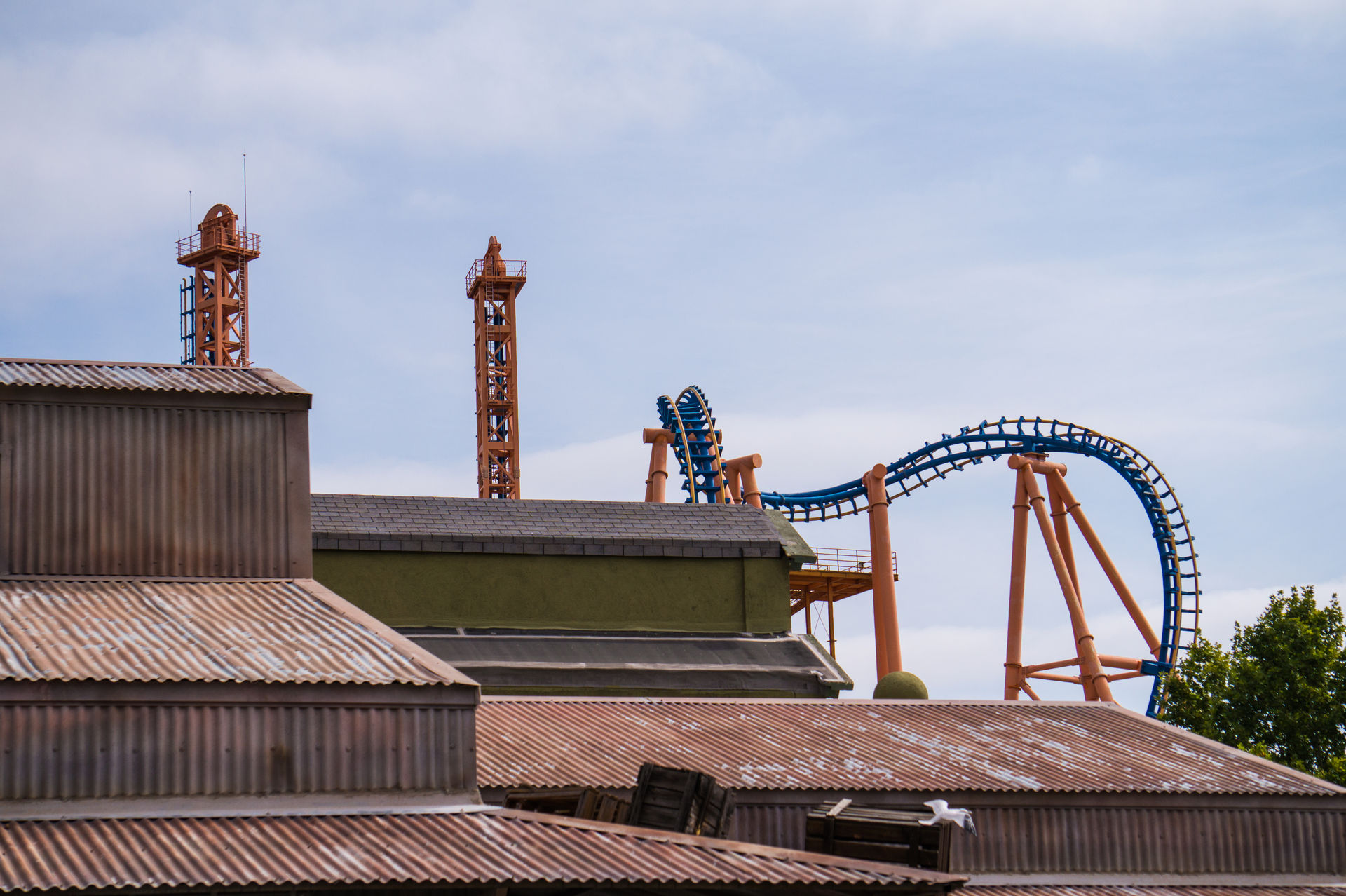 Folgt man nun dem Hollywood Boulevard, blickt man direkt auf den S&S Tower "La Venganza del Enigma" mit einem großen Parque Warner Schriftzug an der Spitze. Dies sieht nicht nur toll aus, sondern eignet sich auch gut als Fotopunkt und als schönes Motiv für zu Hause. Der Park ist sehr grün und reichlich bepflanzt, auch Naturliebhaber kommen hier auf ihre Kosten. In der Mitte des Parks im Themenbereich "Warner Bros. Studios" befindet sich ein See, an dem man einfach mal die Seele baumeln lassen kann. Aber dennoch hat dieser Themenbereich auch rasante Action zu bieten, ist dort doch mit der Achterbahn "Stunt Fall" eine der Hauptattraktionen des Parks zu erleben.