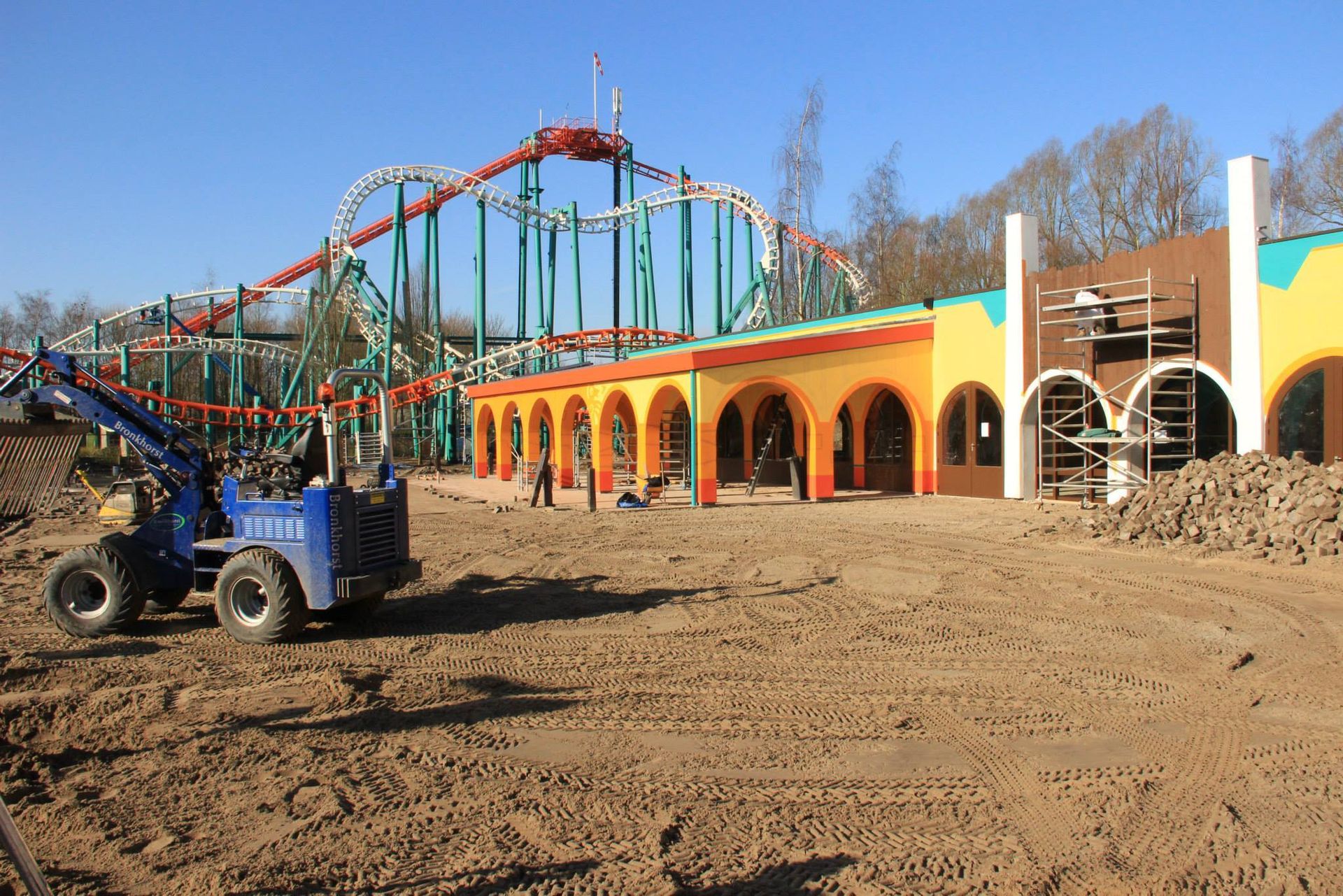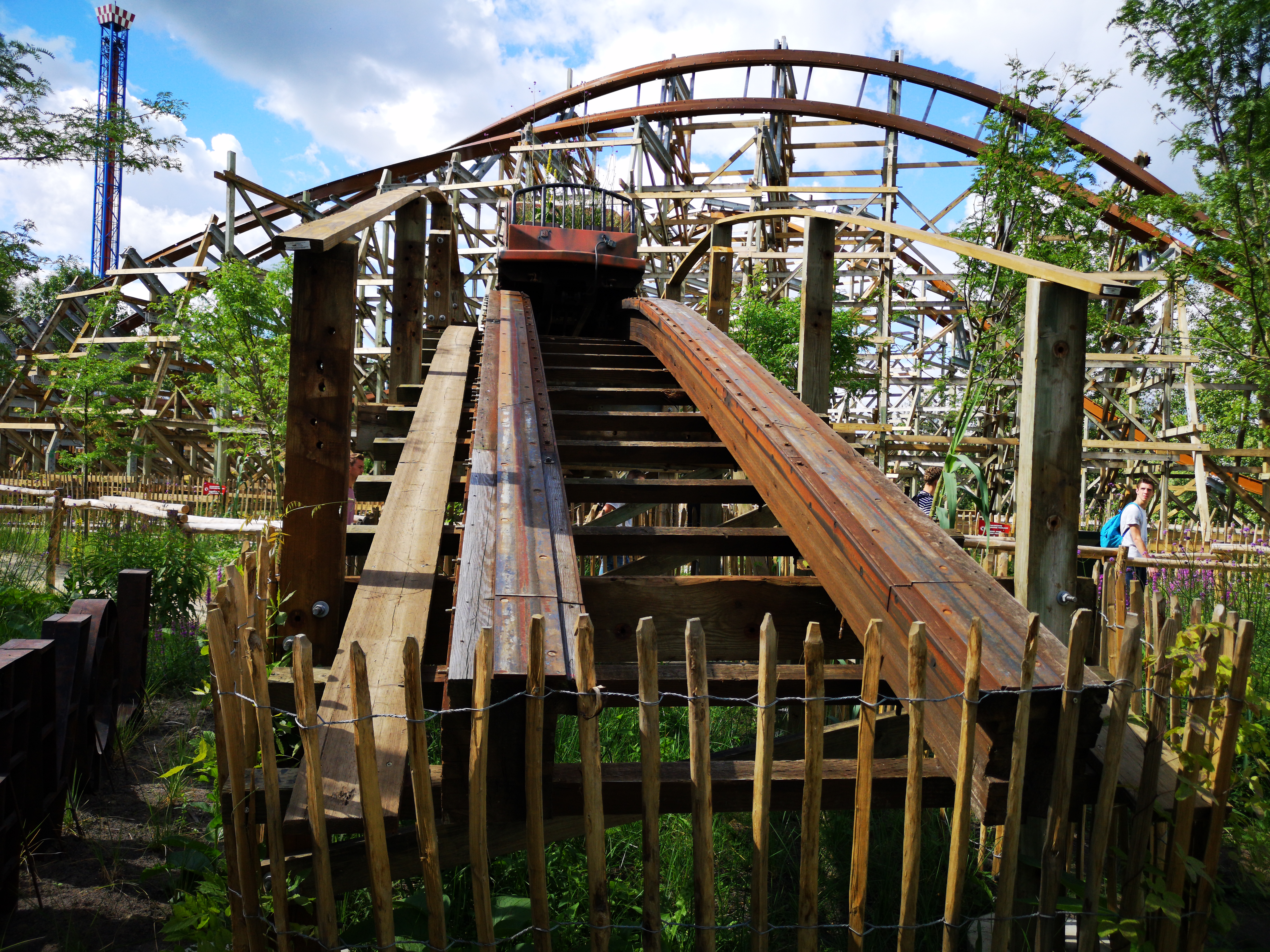 Doch die Hauptattraktion des Themenbereichs entsteht an anderer Stelle. Robin Hood war im Jahr 2000 als erste Holzachterbahn von Vekoma eröffnet worden. Mit Loup-Garou im belgischen Schwesterpark und dem Thundercoaster im norwegischen Tusenfryd eröffneten zwei weitere Anlagen im Folgejahr, ehe sich der niederländische Hersteller wieder vollständig auf seine Stahlachterbahnen fokussierte. Mit dem Saisonfinale 2018 wurde das seltene Trio zu einem Duo reduziert. Denn kaum hatte Walibi Holland seine Tore geschlossen, wurden auch schon die Kettensägen angeschmissen. Doch keine Sorge, Robin Hood wird nicht vollständig zu Brennholz verarbeitet. Vielmehr wird das Holzgerüst die Grundlage für eine noch wildere, in Europa bislang einzigartige Achterbahn bilden. Während die alten Holzschienen - bis auf ein kleines Stück, welches als Denkmal im neuen Wartebereich positioniert werden soll - ausgedient haben, wird die Stützkonstruktion von Rocky Mountain Construction (RMC) neu arrangiert und mit Stahlschienen ausgestattet. Es entsteht der erste Hybrid-Coaster seiner Art in Europa.