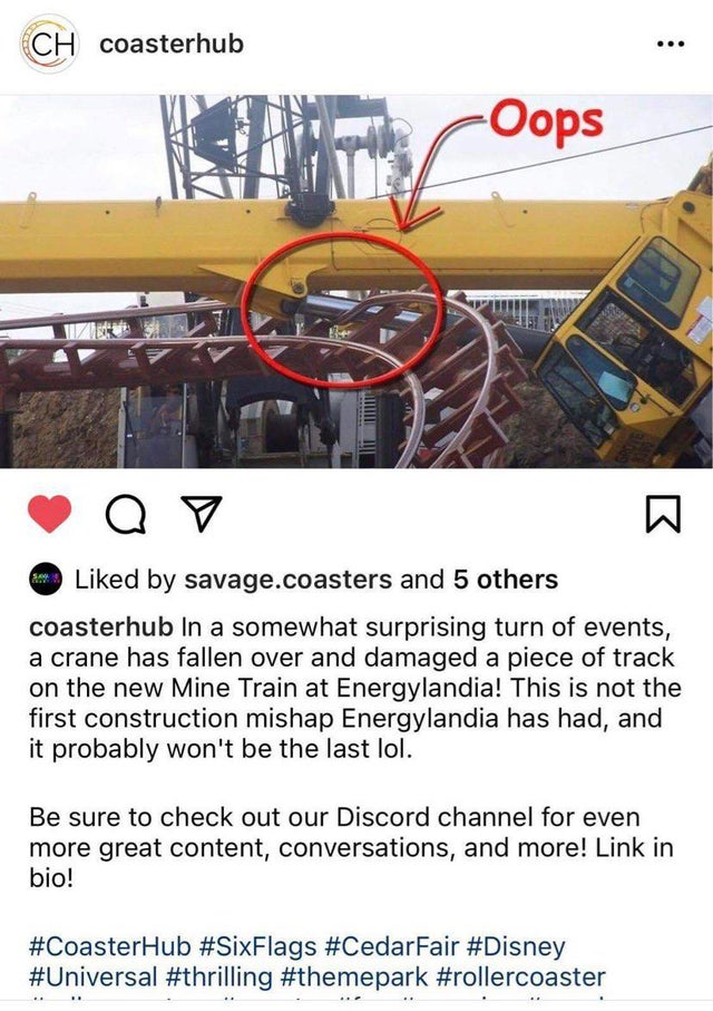 Ein Kran ist in die Schiene des neuen Vekoma Mine Trains gefallen Smilie :927: - Maliboy - 149526 Zugriffe
