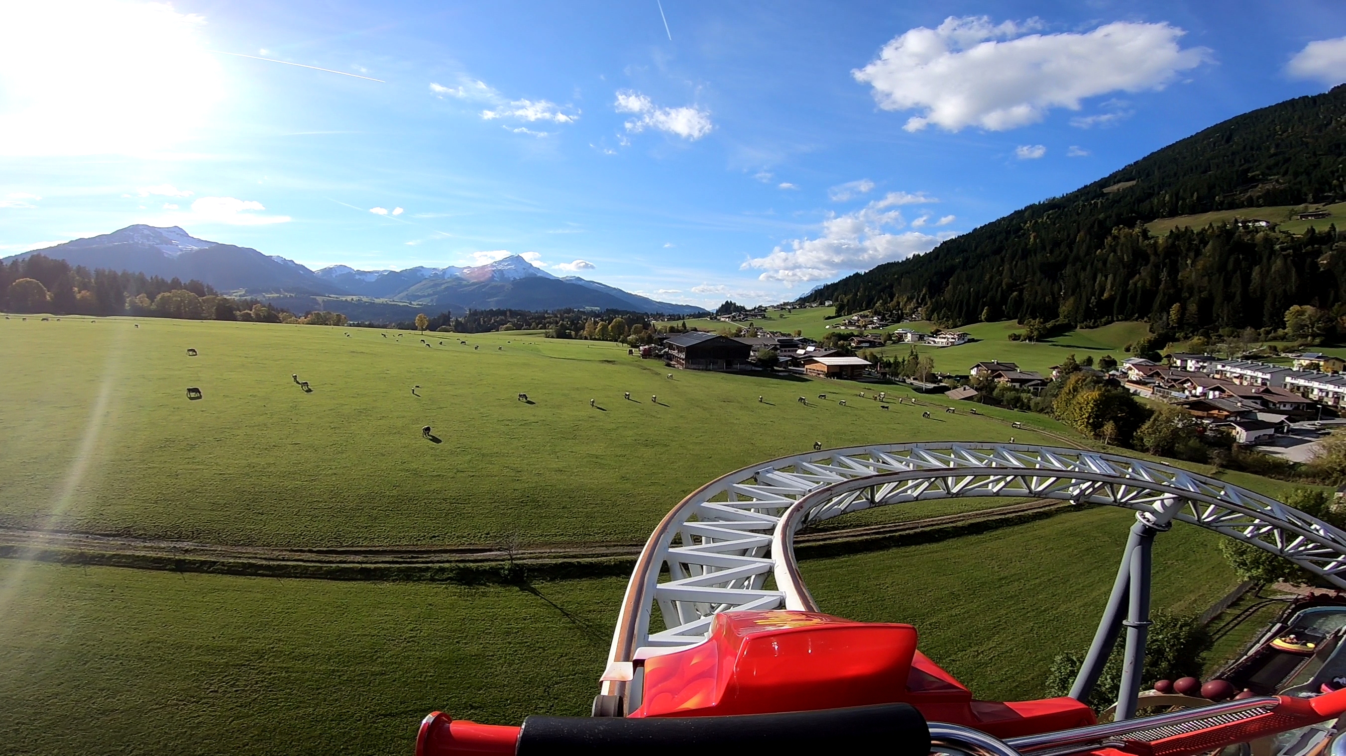 Dort waren wir vor drei Wochen auch. Meine Kleine war schwer begeistert von der Bahn, zu ihrem großen Bedauern fuhr sie nur im Halbstundentakt S Am ersten Umschwung gibt es sogar ordentlich Airtime, nur leider sind die Fahreigenschaften wie erwartet nicht die besten, vor allem die lange Rechtskurve um die Bauernhoffahrt herum schlägt ordentlich zu. Die Bahn hat übrigens ein Appbasiertes 360Grad Onridevideosystem, welches ich aber trotz dutzender Anläufe nicht verstanden habe, da es in der App selbst keine Funktion zum Scannen des QR-Codes gibt und ein Reader diesen nicht verarbeiten kann...