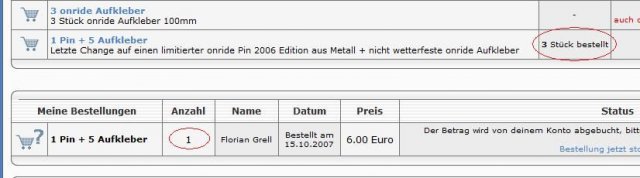 Fairerweise möchte ich erwähnen, dass die Verzögerung beim Pin-Versand auf meine Kappe geht. Wie Volker bereits in diesem Beitrag erwähnte, gibt es nicht mehr viele Pins - und die wenigen, die noch erhältlich sind, liegen momentan noch bei mir rum. Im Laufe dieser Woche werde ich meinen Bestand an Volker übergeben, damit er sich um den Versand kümmern kann.
