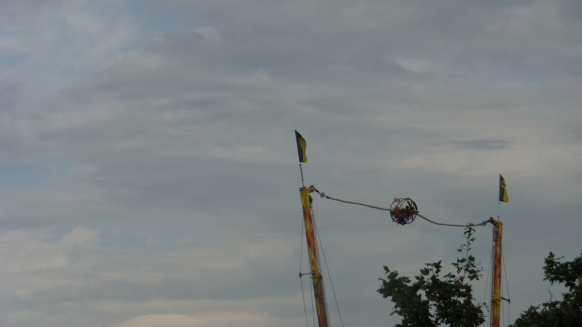 Turbo Force wurde fast nur einseitig beladen, weshalb auch immer. Sonst war es für einen Mittwoch und warme Temperaturen irgendwie nicht so voll. Frisbee hatte für 2 € eine schöne lange Fahrt, die zweite war aufgrund "Rückwärtsessens" dann schnell gestoppt.