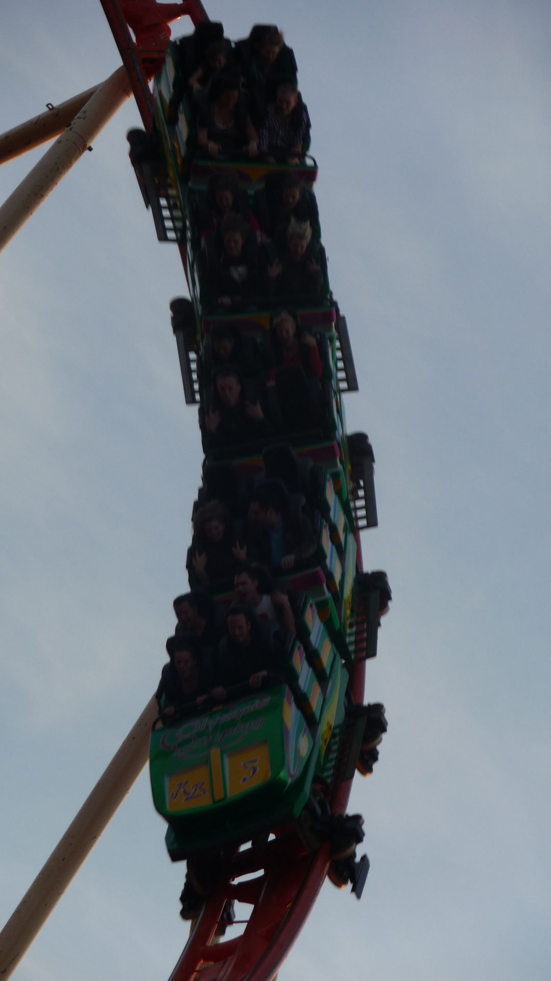 Mit Olympia Looping und Rocket hat man 2 "Giganten" platziert, die für die Verhältnisse gut angenommen wurden. Sonst war fast alles Stammbeschicker. Frisbee ist im Gegensatz zu XXL, trotz gleichen Bewegungsabläufen, ein großer Unterschied. Statts nur in den Sitz gepresst zu werden, hat man bei Frisbee schöne Schwerelosigkeit, und bei vollem Aufdrehen ordentlich G Kräfte. Nur sollte man nicht wie mein Kumpel, davor Pommes gegessen haben. Ist eklig!