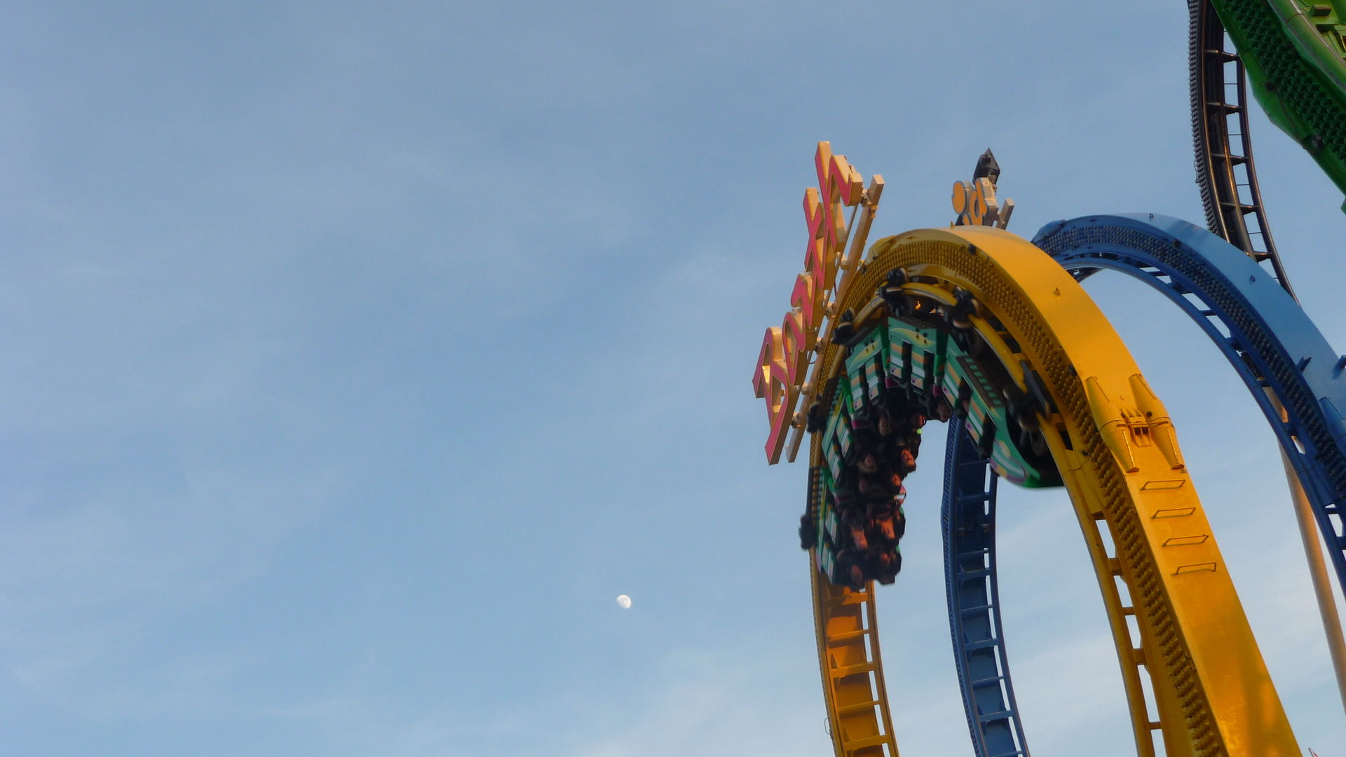 Olympia Looping hatte nen ziemlich unfreundlichen Mitarbeiter heute, der nur i.was auf Polnisch geflucht hat, weil ich eine Sekunde länger im Wagen saß, als die Bügel aufwaren
