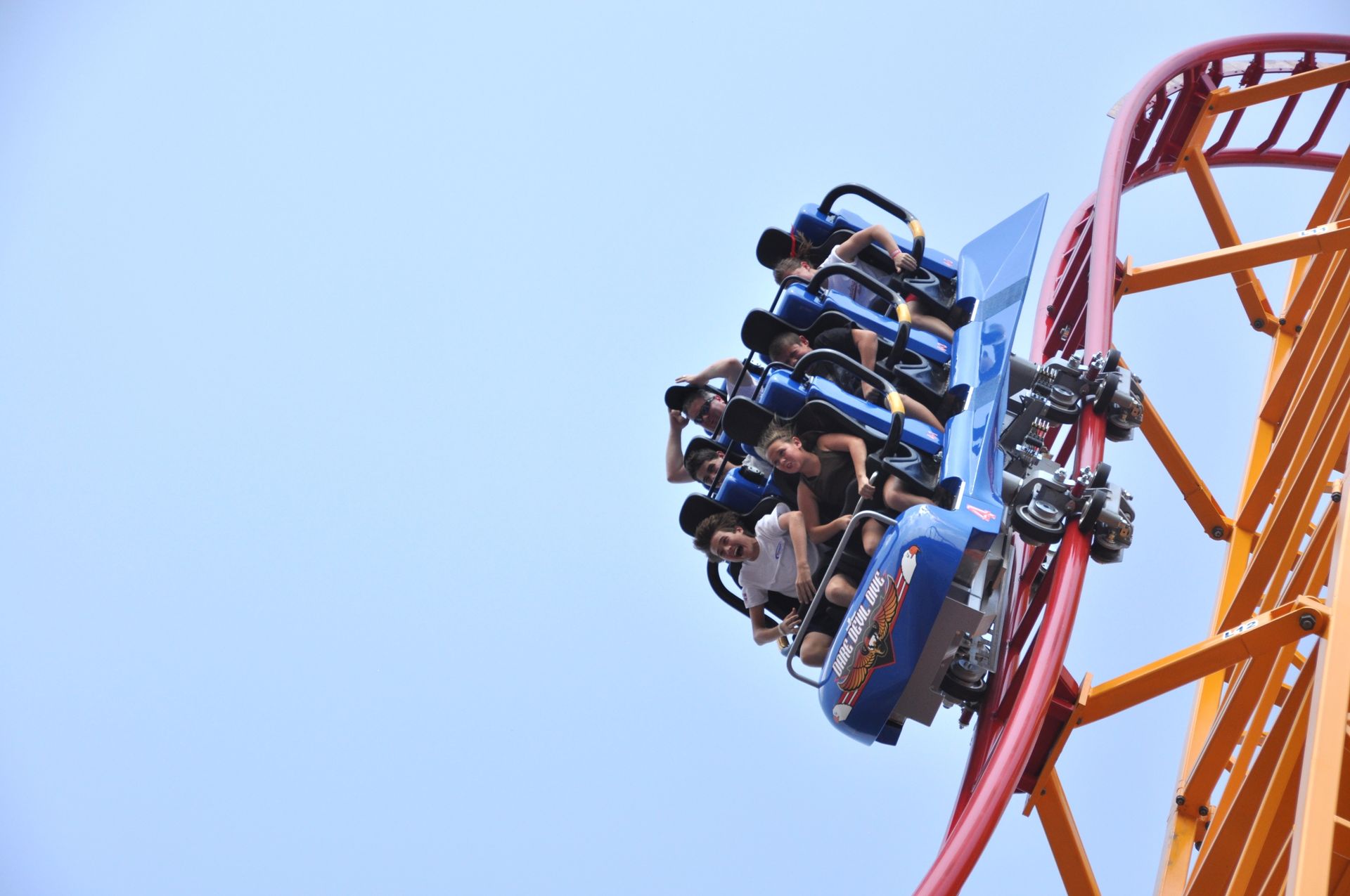 Spass beiseite: Der Sturz entspricht den anderen Euro Fightern, aber insbesondere die beiden Inversionen werden mit viel Speed durchfahren. Durch die Seitenlage der Inversionen kommt ein irgendwie unbeschreibliches Fahrgefühl auf, indem man richtig zur Seite gerissen wird. Der zweite Teil der Strecke hingegen wird extrem langsam absolviert, und insbesondere in der Heartline Roll sorgt das für ordentlich Hang Time.