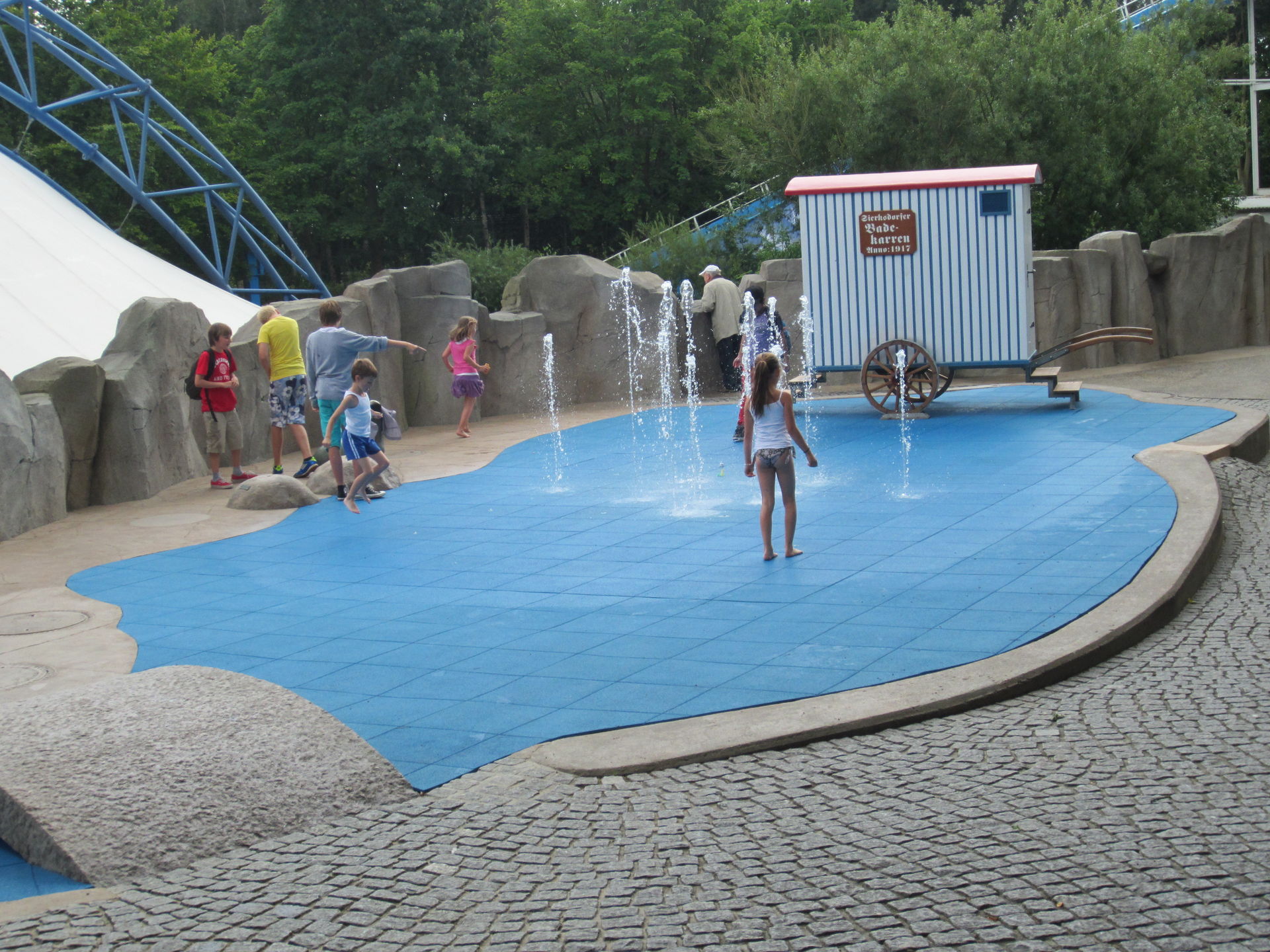 Hier gab es früher bereits einen Wasserspielplatz. Die neue Anlage besitzt jedoch einen besseren Bodenbelag und wird (wenn er fertig gestellt ist) aber deutlich schöner aussehen.