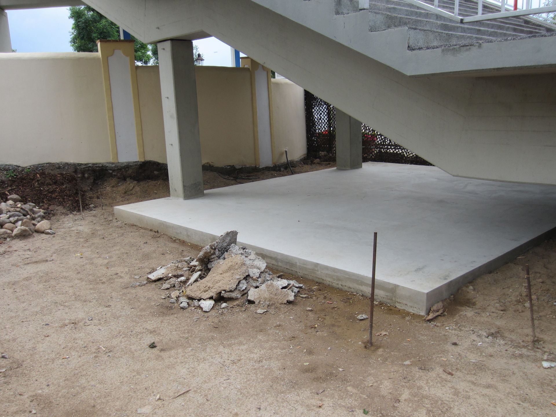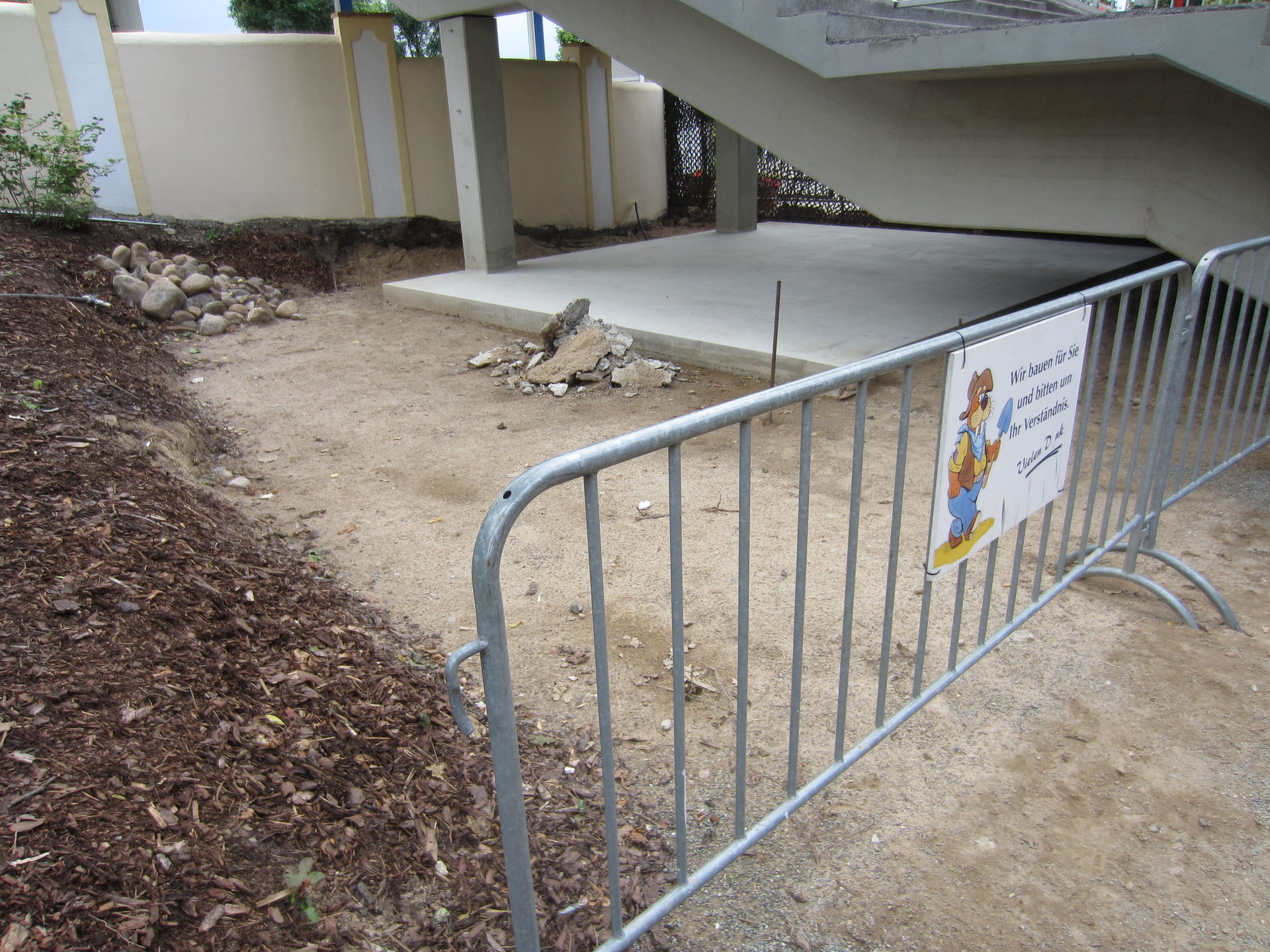 Vom neuen Spielplatz unter der Treppe zum Parkplatz ist bisher jedoch nicht mehr als das Fundament zu sehen
