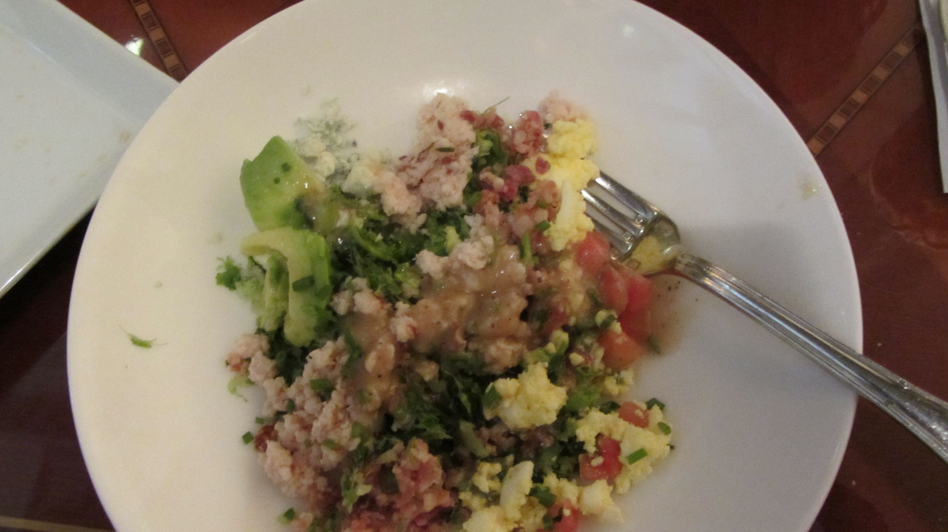 Famous Cobb Salad - with finely chopped greens, turkey breast, egg, bacon, tomatoes, crumbled bleu cheese, avocado, chives and Cobb dressing