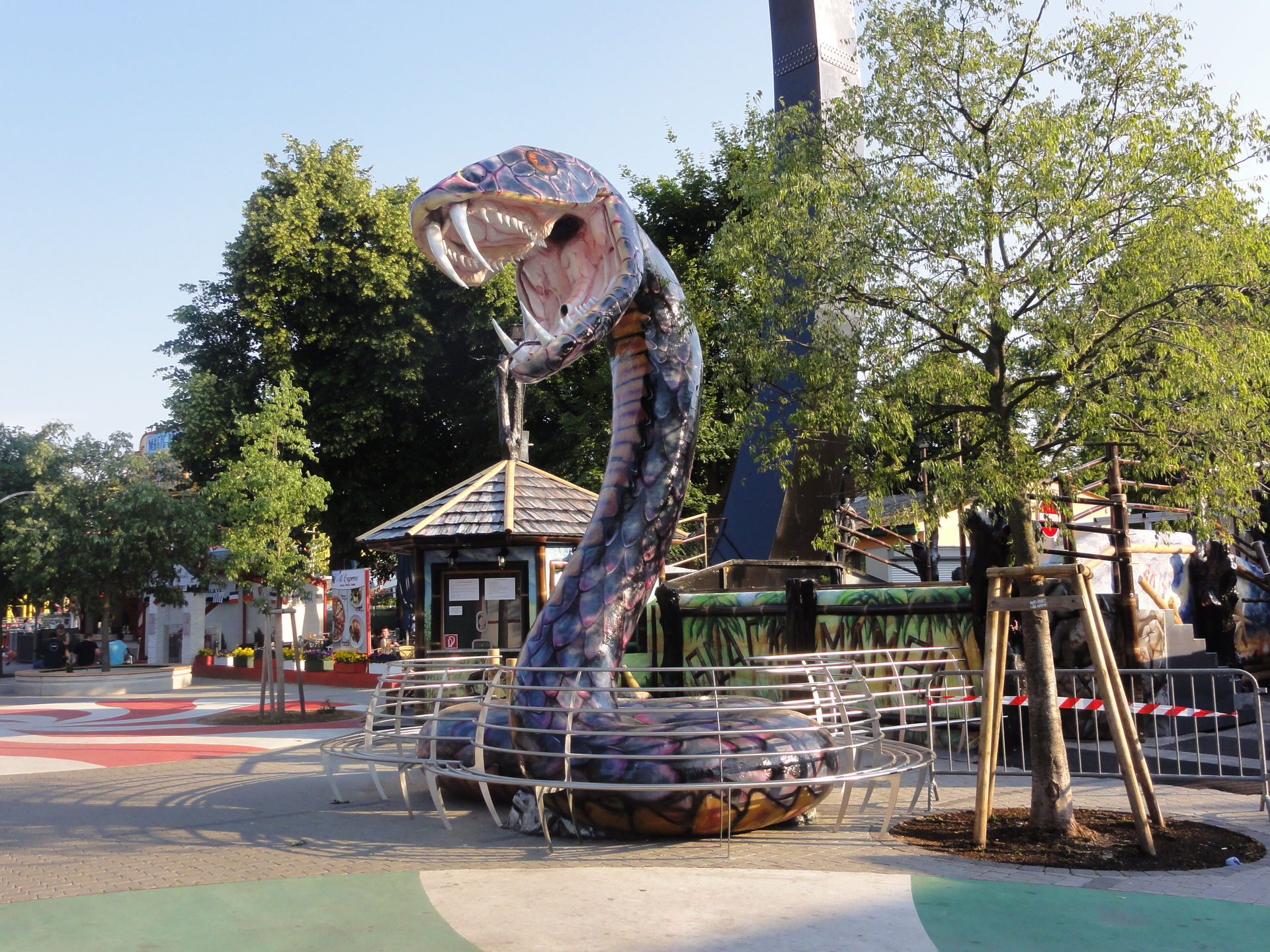 Was noch dazugekommen ist, ist eine unbequeme und wackelige Sitzbank rund um die Deko-Schlange.