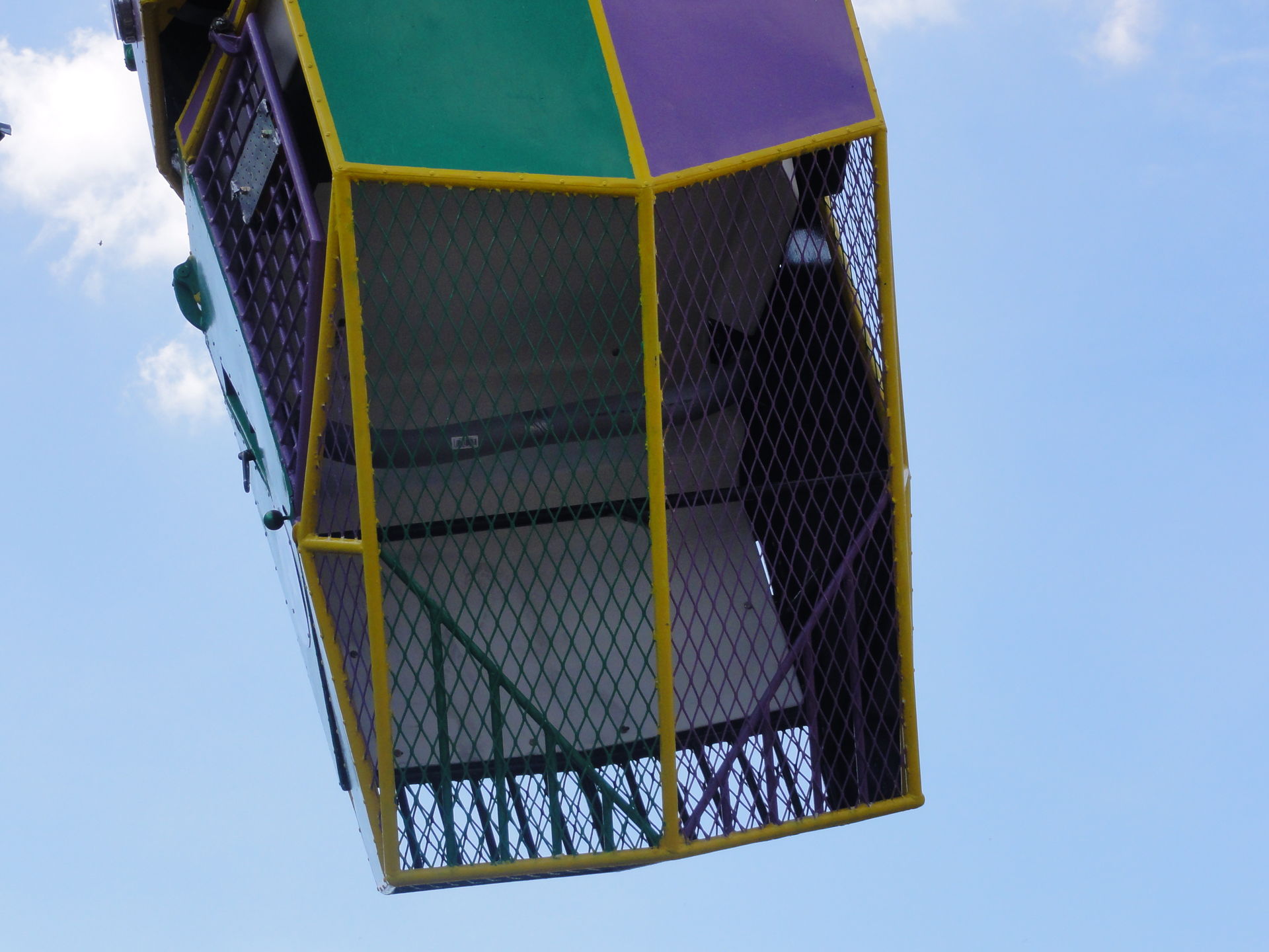 Was mich dann erwartete, war einer der genialsten Flatrides, die ich bislang kenne! Chaos-Pendel in Perfektion, denn jede einzelne Runde empfand man anders, nicht nur durch die Bewegung, sondern vor allem auch dank der Tempowechsel während der Runden. Das beste an der ganzen Sache, teils wird einem massive Airtime geboten Smilie :835: - bubbleskh - 42793 Zugriffe da hauts einen richtig aus den Socken bzw. in die Bügel. Und das ist das einzig Unangenehme an der Sache, die Schulterbügel sind alles andere als bequem, gerade, wenn man noch recht viel Spielraum zwischen Sitz und Halterung hat wie in meinem Fall. Aber dem Spaß tut dies zum Glück keinen Abbruch, solange man kein ausgegorenes Weichei ist S . Super fand ich auch, dass zuerst im Uhrzeigersinn gefahren wird bis zur Hälfte der Fahrt, dann verharrt die Gondel für einige Zeit am höchstmöglichen Punkt. Dabei bietet sich einem ein toller Ausblick oder bei ungleicher Beladung der Blick rund 40m in die Tiefe. Und sehr plötzlich gehts dann gegen den Uhrzeigersinn weiter und mit einem Affenzahn in die Tiefe.