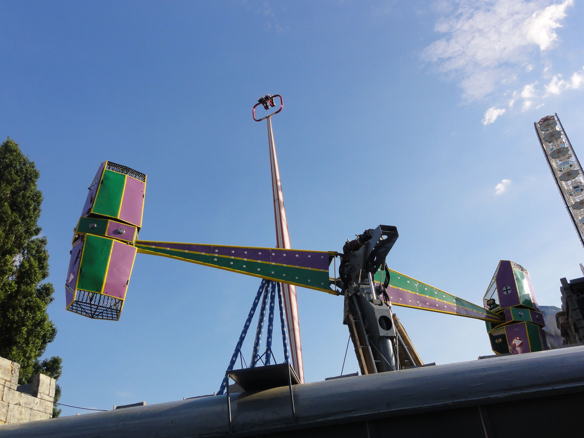 An anderer Stelle hat sich auch was getan, der Zamperla Super Spin wurde aufgebaut und steht betriebsfertig vor Extasy. Als Namen trägt das neue Fahrgeschäft Speedfire. Wie man auf den Bildern gut erkennen kann, weisen Extasy und Speedfire eine sehr ähnliche Farbgebung auf.