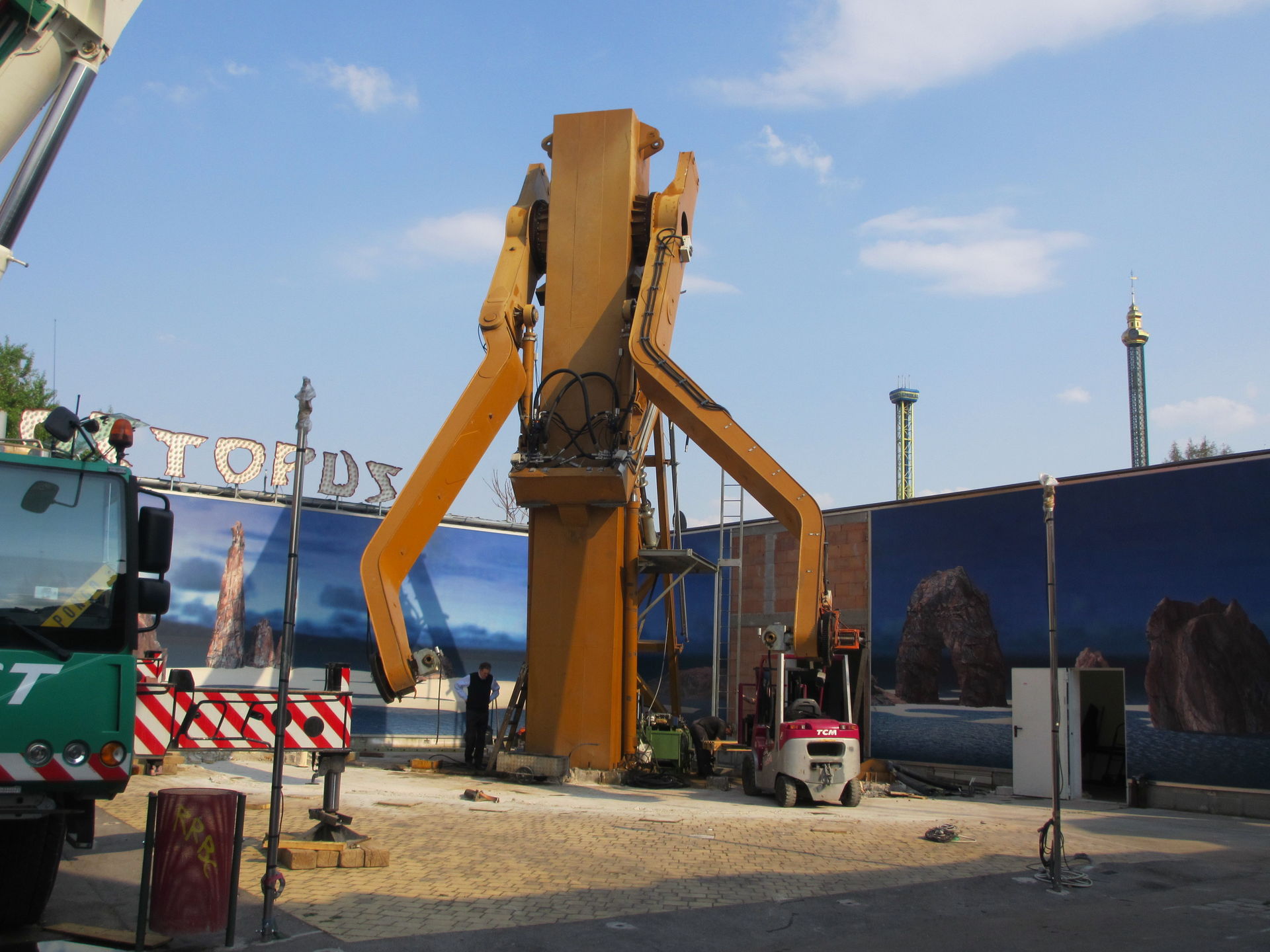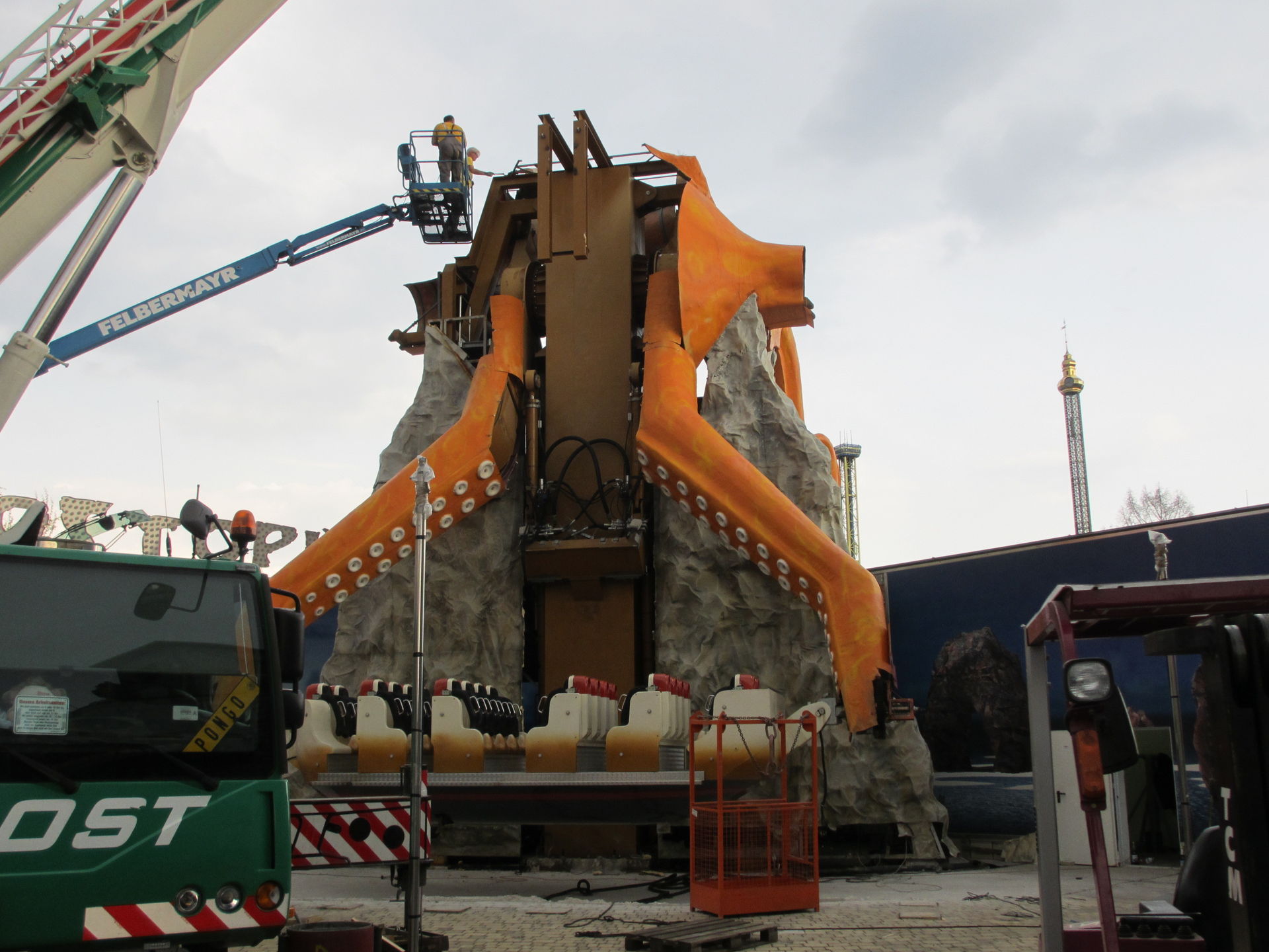 So wie es ausschaut wird mit der Montage vom nie wirklich von Fahrgästen gestürmten Octopus angefangen.