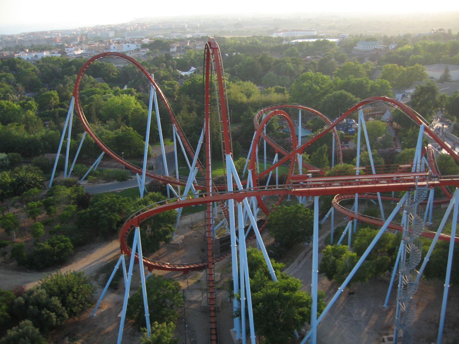 Dieses Jahr zog es mich bereits zum dritten Mal an die Costa Dorada, genauer gesagt in das hauptsächlich von Engländern besuchte Touritsenörtchen Salou. Anreise war am Samstag (14.07.), Abreise am Donnerstag (19.07.). Die Reise begann in Frankfurt-Hahn, wobei Frankfurt ja nicht sehr treffend ist. Um 10Uhr ging es dann mit Ryanair nach Reus. In Reus angekommen gings mit dem Taxi weiter ins ca. 10 Minuten entfernte Salou. Angekommen, eingecheckt und dann sofort die Straße Richtung PortAventura hoch gelaufen (Hotel war 'Salauris Palace'). Nach guten 10 Minuten erblickte ich dann den Eingang. Als erstes fiel mir die Werbung für den 'Pase de Verano' auf, was so viel heißt wie 'Sommerkarte'. Diese Karte kann man für nur 76€ erwerben, dann hat man 14 Tage lang freien Eintritt in den PortAventura Park sowie einmalig 20% Rabatt auf den Eintrittspreis in den Caribe Aquatic Park. 76€ sind super billig, wenn man mal bedenkt, das ein Einzelticket alleine 39€ kostet. Also schnell die Karte gekauft und ab durch die Ticketkontrollen. Natürlich freute ich mich am meisten auf FuriusBaco, es sollte mein erster IntaminLaunch sein.
