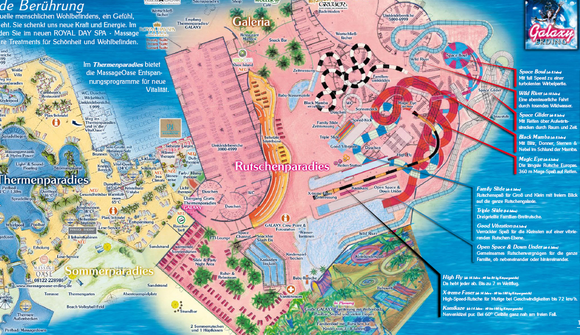 Nachdem dieses Jahr in der Vital-Oase drei neue Heilbecken sowie die 350qm Bali-Lounge mit asiatisches Theming im balinesischem Stil entstanden ist, wird für 2010 wieder eine Erweiterung des Rutschenbereichs angekündigt. Außerdem eröffnet im Saunabereich eine weitere Lounge die Pforten. Hier der Pressetext:
