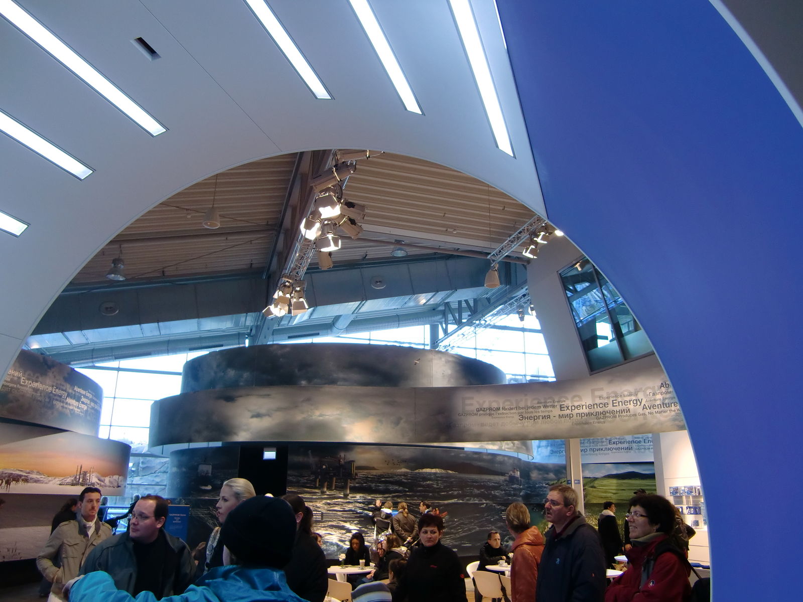 Die Schlange führt durch 3 360° Kinos in denen jeweils ein Film gezeigt wird. (Ich glaub über Energiegewinnung oder sowas) Zwischendurch wird mal Wind oder Regen simuliert.