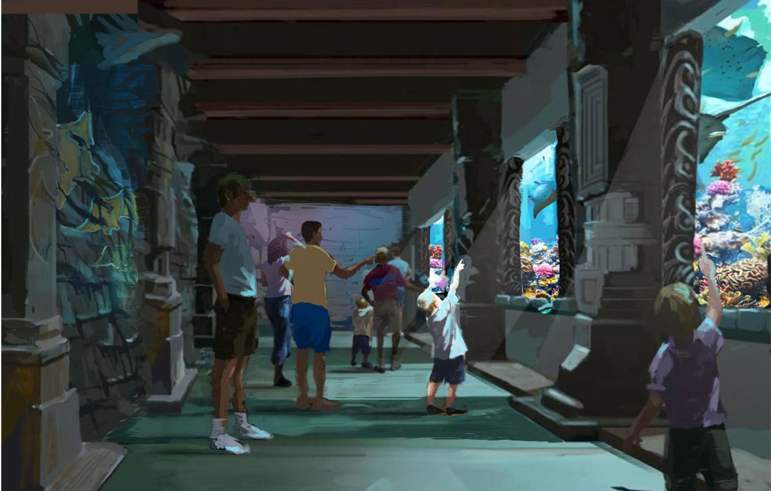 Manta will part of a larger development, much like the similarly themed coaster at Sea World Orlando. Guests will be able to explore Forbidden Reef, an existing attraction, that will contain "65 bat rays, 10 guitar fish, and hundreds of other fishes." There will be underwater viewing areas, along with an above ground area in which guests can interact with the rays.