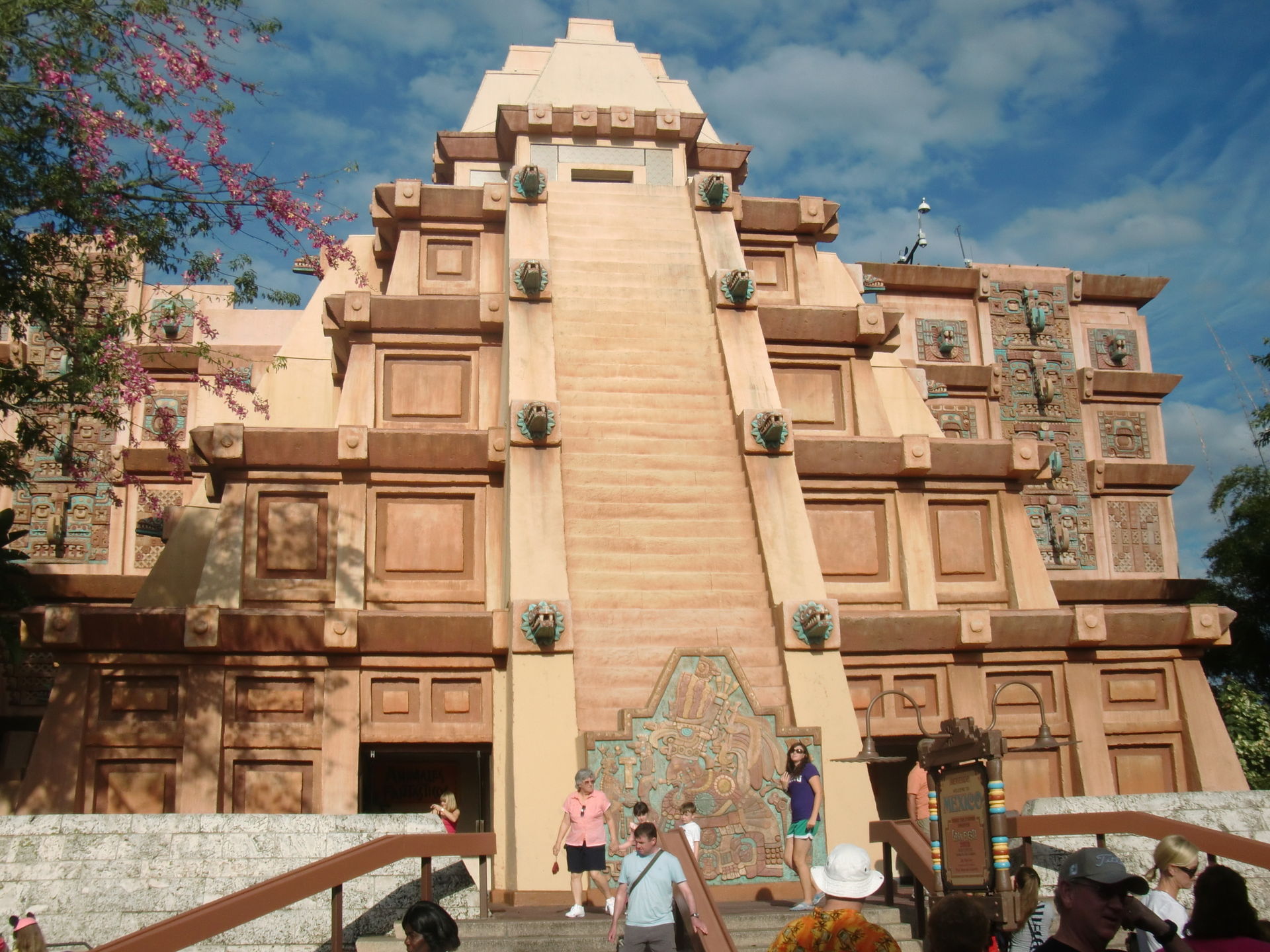 Tempel im Mexikanischen Pavillion, mit Restaurant und Darkride.