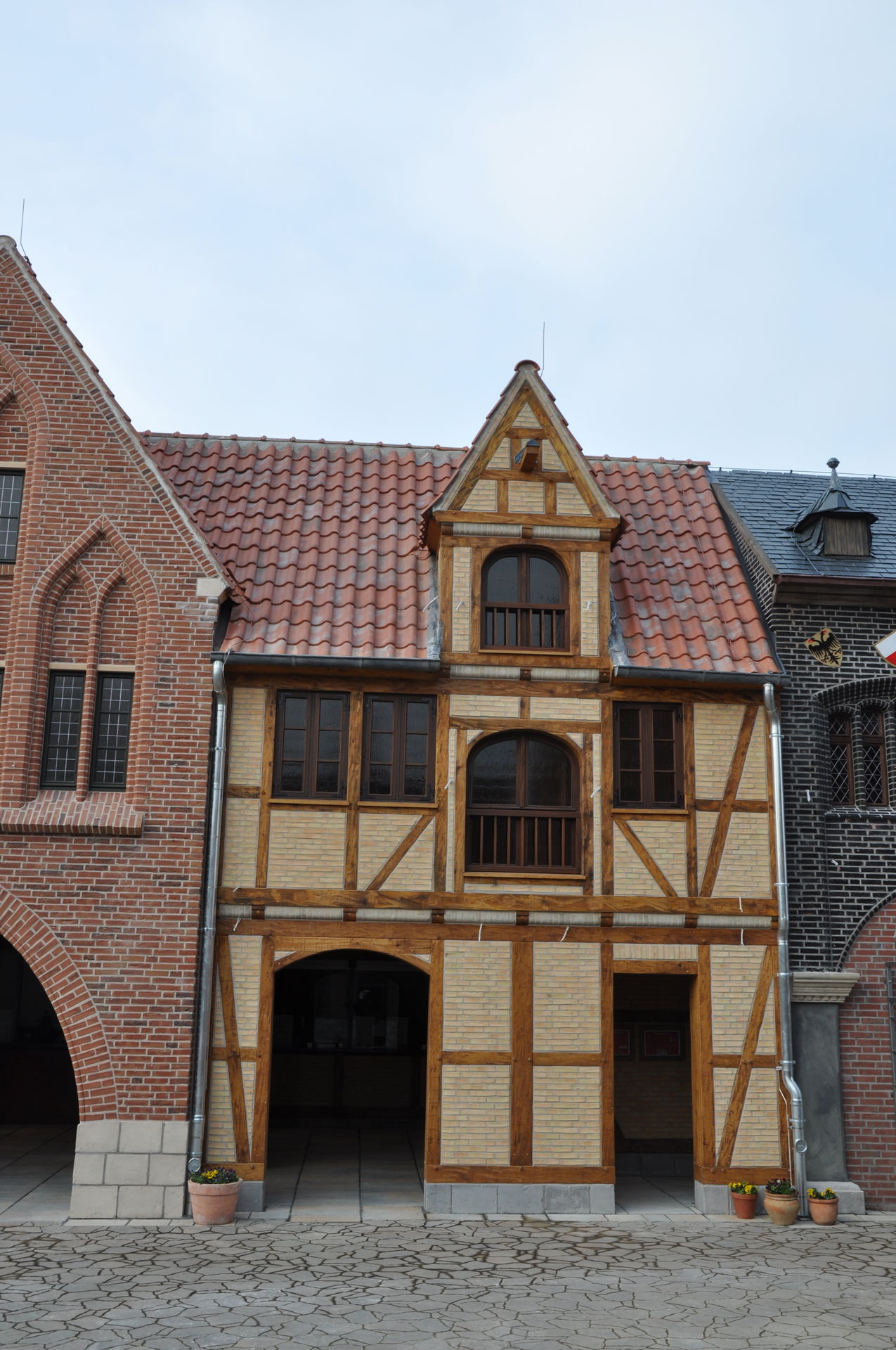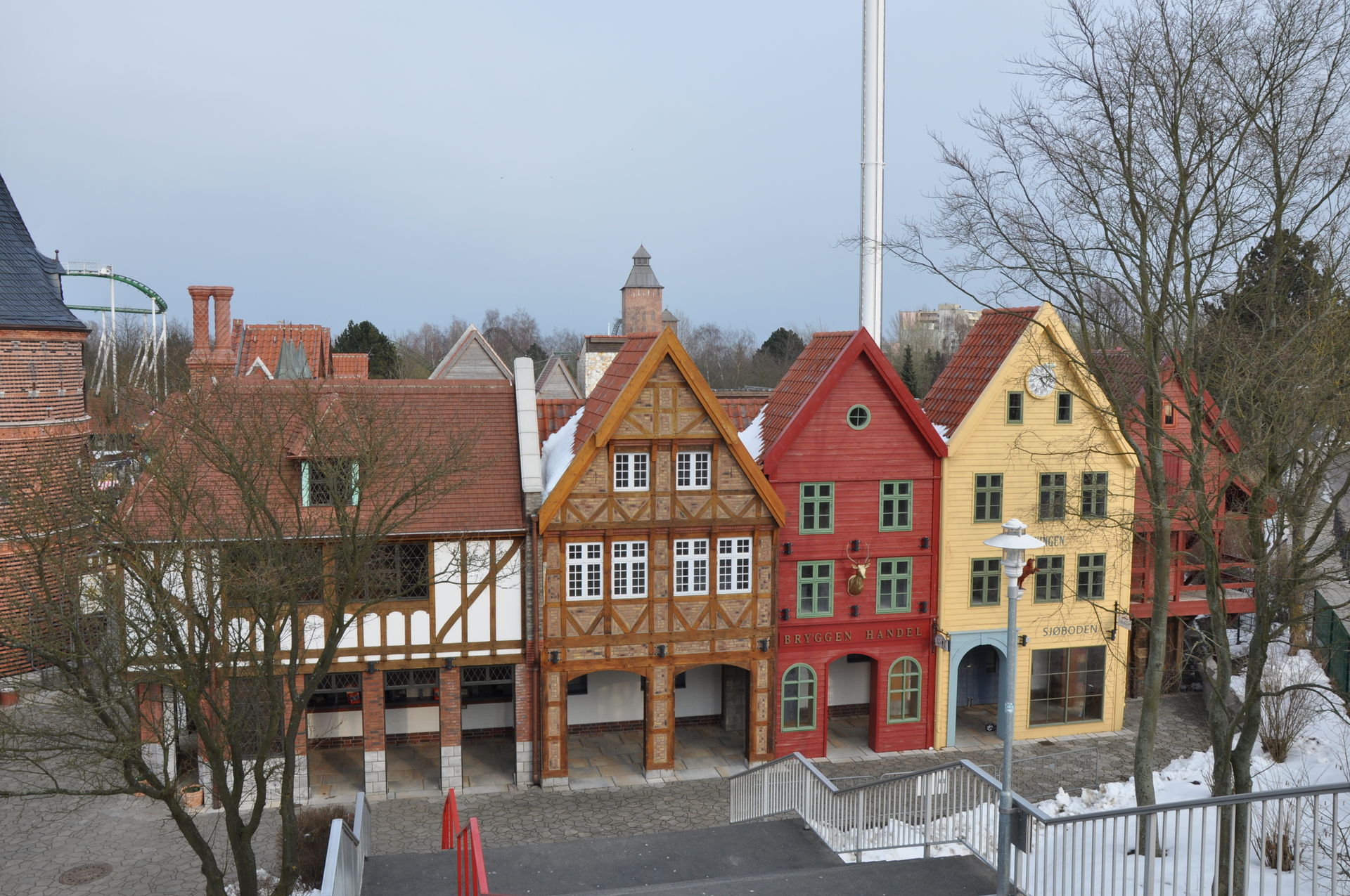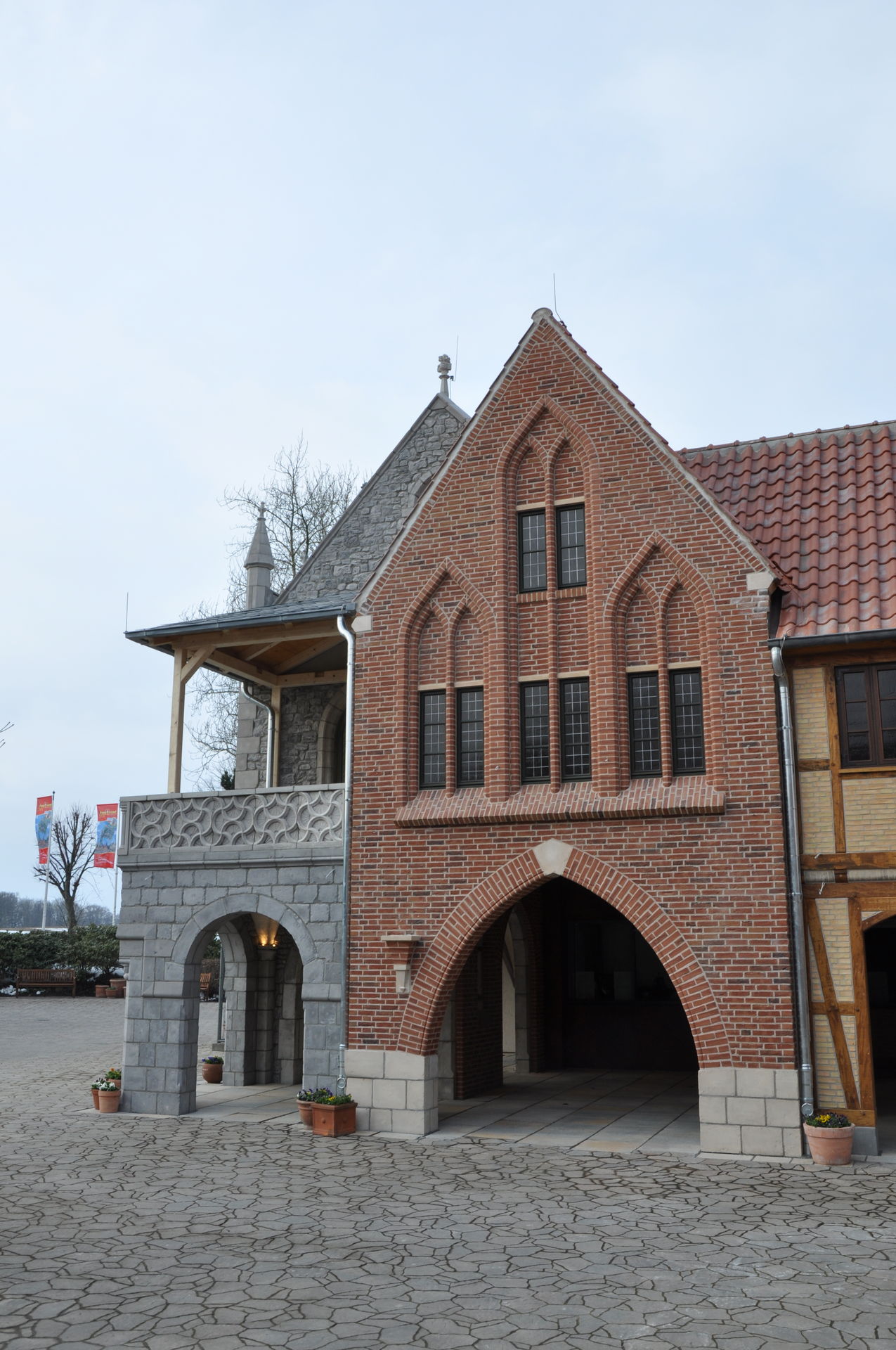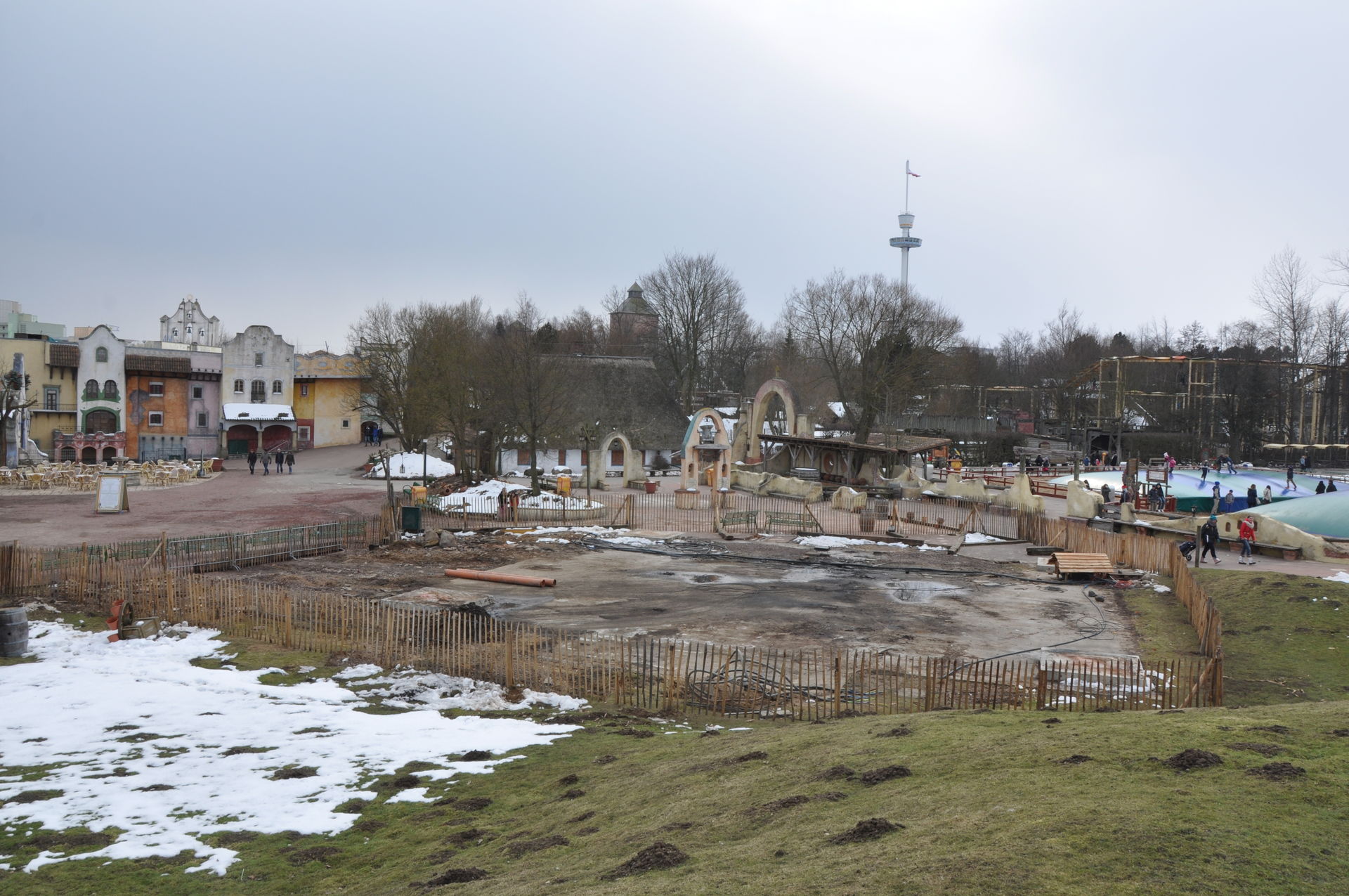 Erweiterung der Hanse-Themenwelt links vom Holstentor. Die Gebäude an den Kassen sind bereits fertig. An den Gebäuden Richtung Verwaltung und Fahrradständer wird noch gearbeitet.