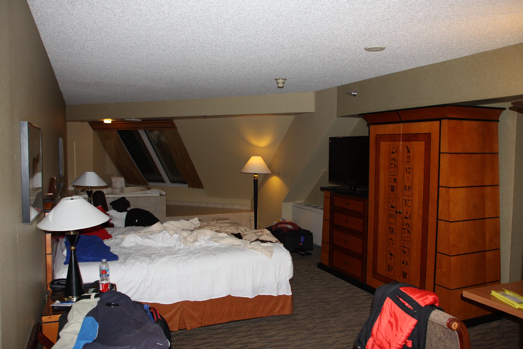 Beim Hotel habe ich dieses Jahr gute Erfahrungen im Luxor gemacht, es liegt am unteren Ende vom Strip und ist vom Rollfeld des Flughafens sofort zu sehen. Fluglärm ist jedoch kaum bis gar nicht auszumachen, zudem kostenlose Parkplätze im Überfluss. Das Zimmer für zwei Personen hat mich von Dienstag bis Samstag 173¤ gekostet. Es soll ratsam sein, beim Check-In nach renovierten Zimmern zu fragen, was ich auch direkt gemacht habe. Frühstück und Abendessen gibt es nicht vom Hotel, sondern von der Mall gegen Cash, dass ist aber in Vegas so wohl normal. Die Übernachtungspreise des Luxor schwanken stark, zwischen 44 ¤ bis 340 ¤ pro Tag. Hier ist es ratsam, die Webseiten wie booking.com, Hotel.de etc. zu durchforsten. Auch mal die Website des Hotels direkt prüfen. Weiteres siehe unten.