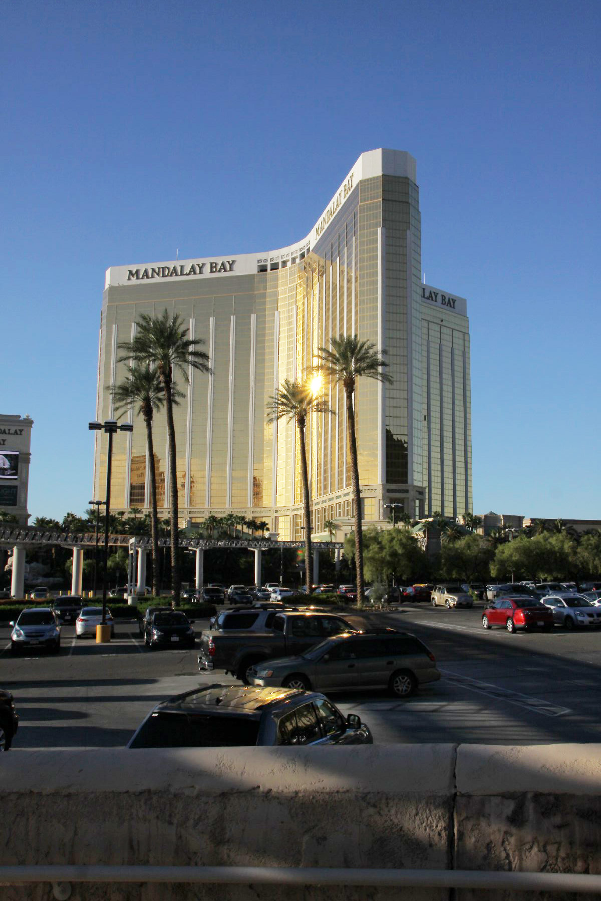 Das erste Hotel linksseitig, Mandalay Bay, was du auch hinter dem Las-Vegas-Schild erkennen kannst