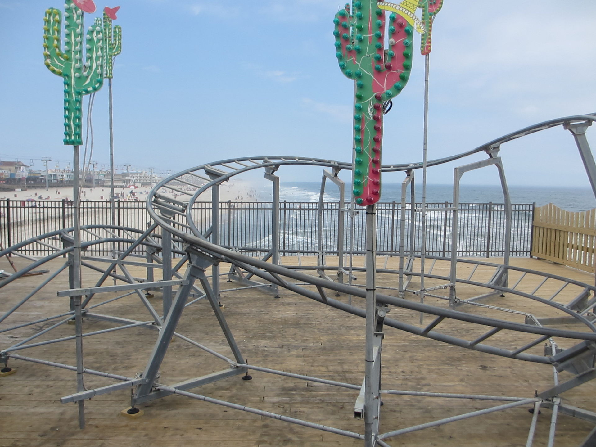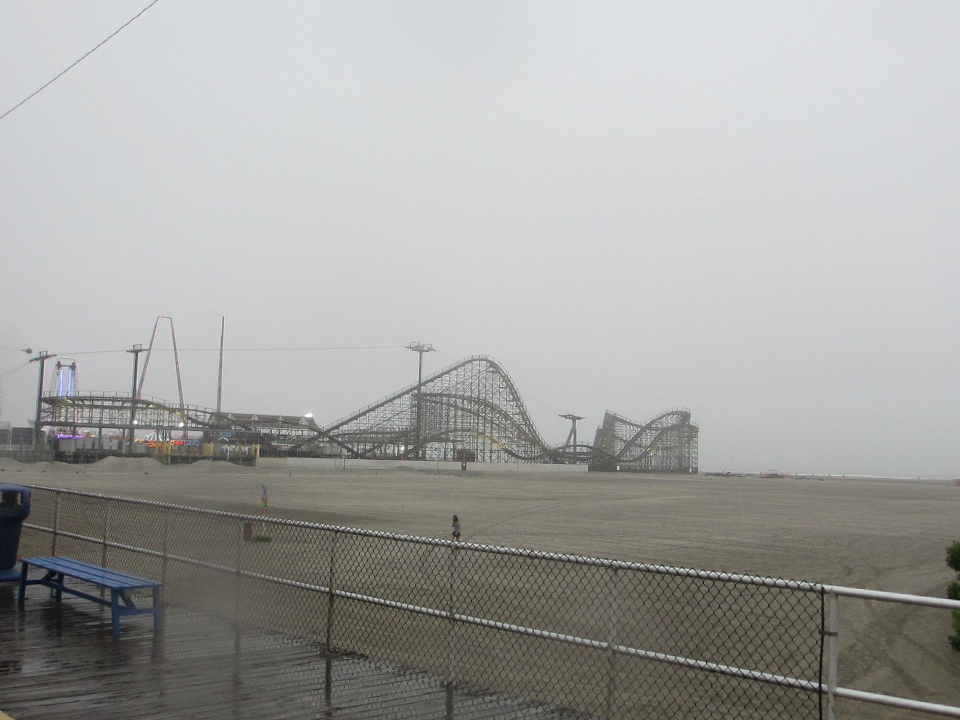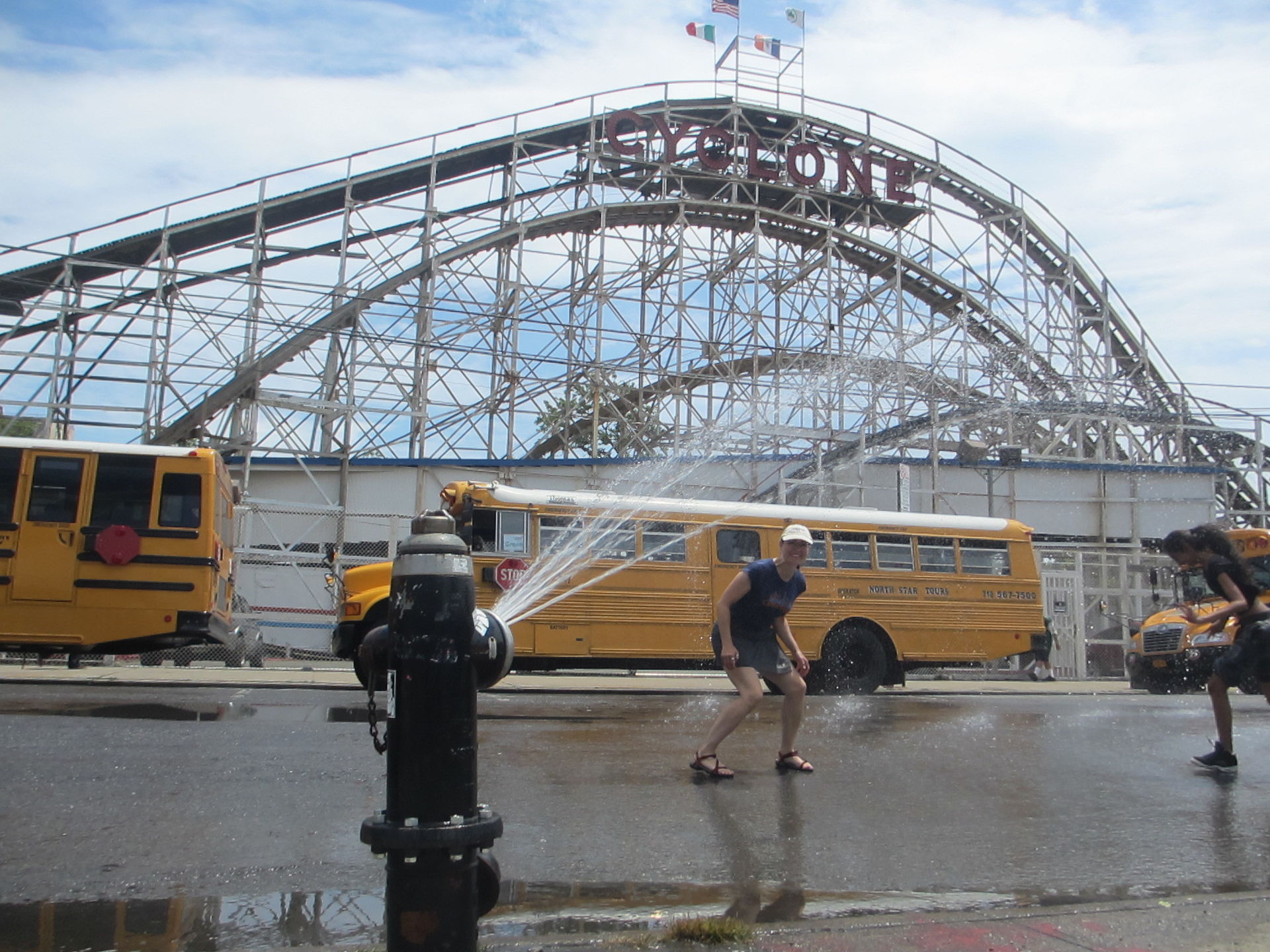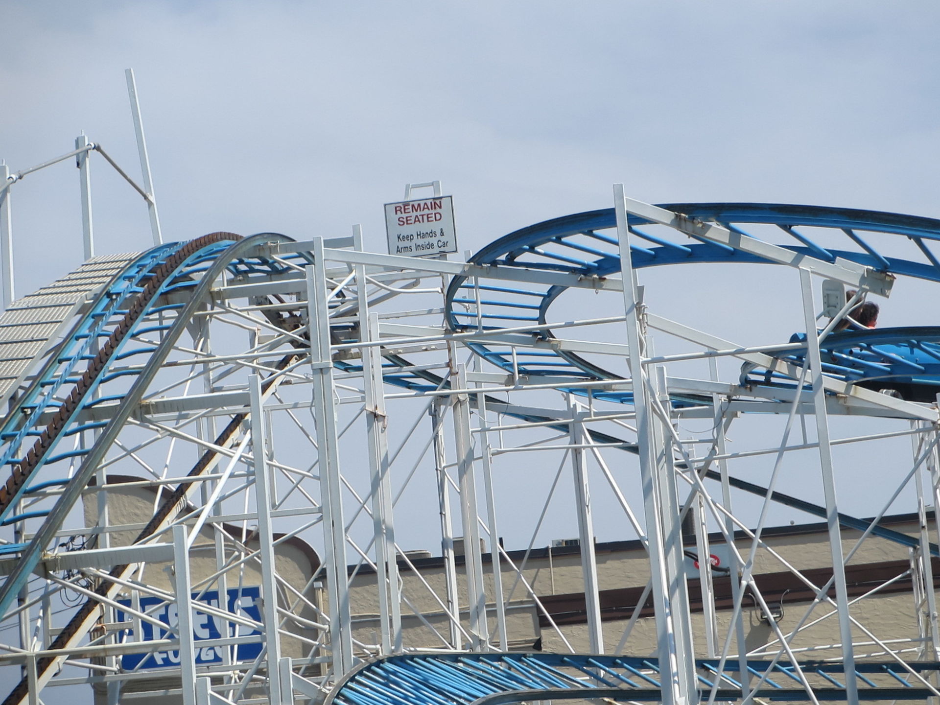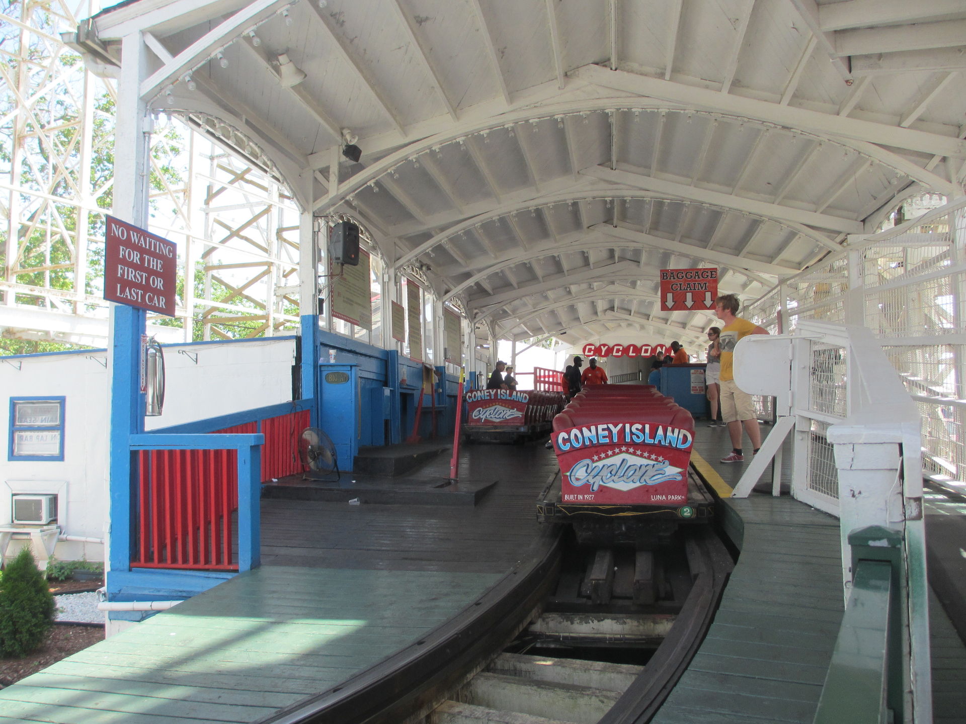 Eineinhalb Stunden später als geplant angekommen, wollen wir unseren diesjährigen Urlaub jetzt erst einmal würdig einläuten und was könnte ein besserer Start in einen solchen Urlaub sein, als der ehrwürdige Cyclone in Coney Island. Glücklich, endlich in dieser Achterbahn zu sitzen, beschweren wir uns garantiert nicht über seine einerseits zu alt-rauhen und andererseits zu neu-soften Fahreigenschaften.