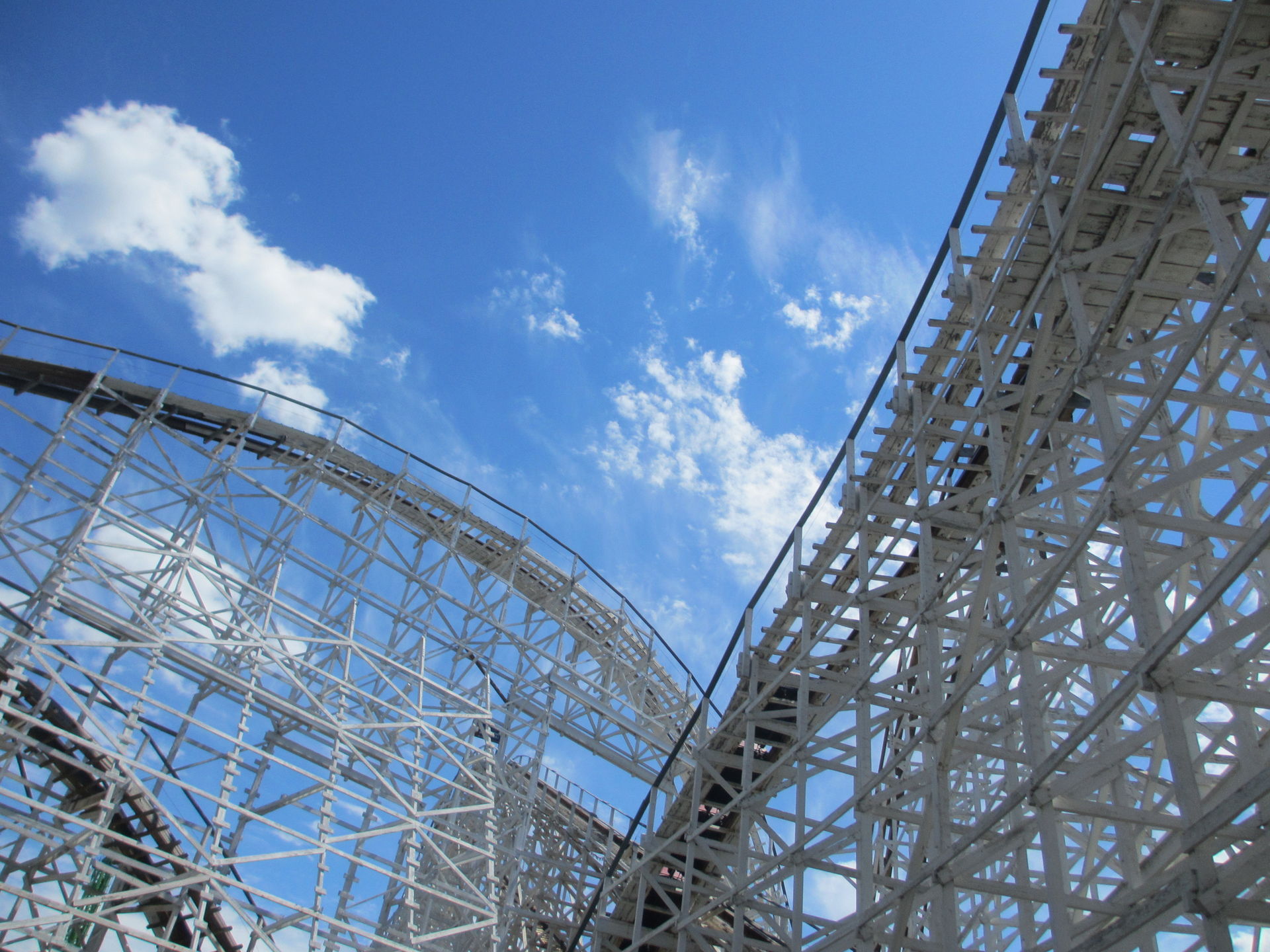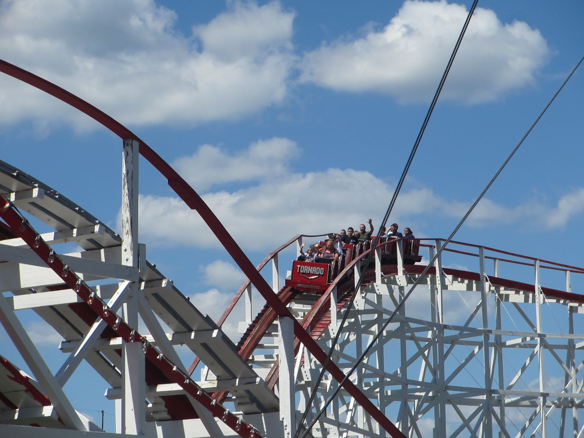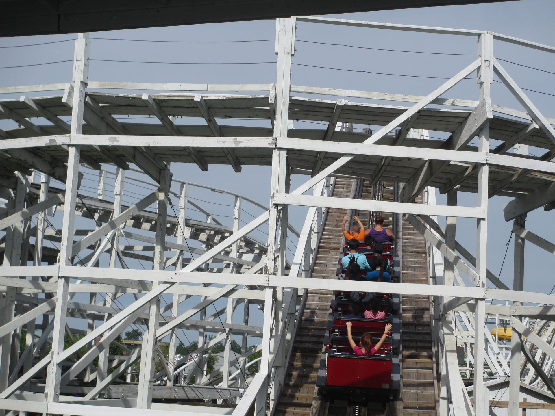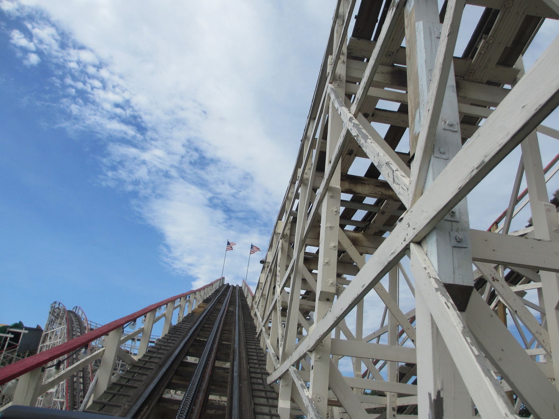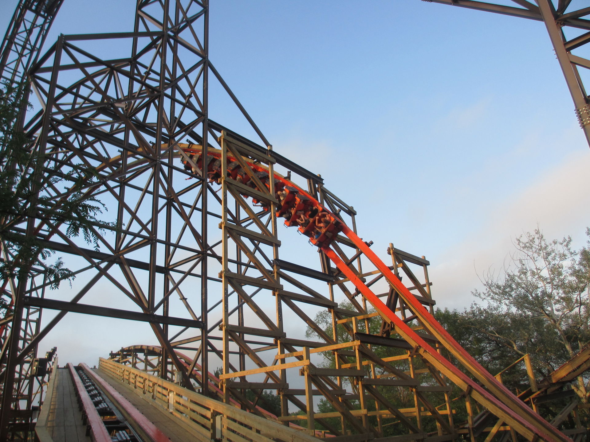 Die verlorene Reisezeit aufgrund des fehlgeleiteten Koffers haben wir wieder aufgeholt und können den Parks endlich die Aufmerksamkeit zukommen lassen, die sie verdient haben. Hervorragend für eine befriedigende Becoasterung eignet sich der Jack Rabbit. Es gibt für diesen alten Holzhasen tatsächlich keinen Namen, der besser zu ihm passen würde. So rast er knapp über der Grasnabe, springt in großen Sätzen weiter und duckt sich immer wieder, bis er zum Schluss im Kaninchenbau verschwindet.