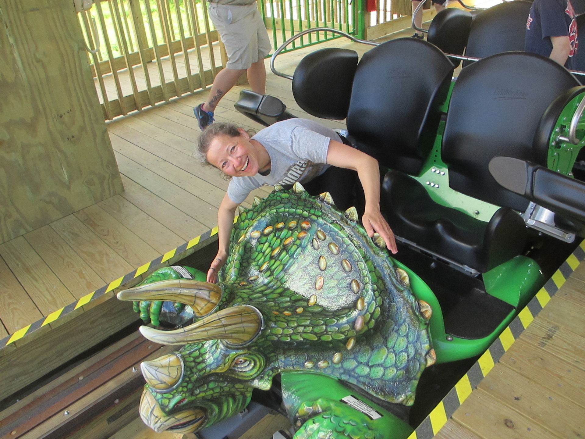 Wie plant man eine Coastertour um, die eigentlich gar keine Alternativmöglichkeiten bietet? Bruno macht es möglich. Und bevor wir wieder nach Danbury zurückfahren, lenken wir unseren weißen Nissan in die Richtung, wo sich Schildkröte, Truthahn und Eichhörnchen Guten Morgen sagen und statten im Story Land der brandneuen Gravity Group Kreation Roar-O-Saurus einen Antrittsbesuch ab. Diese kleine Großechse besticht nicht nur mit dem Schnuckeligsten aller Frontcars, sondern auch mit einer an Twister @ Gröna Lund erinnernde Fahrdynamik. Toll!