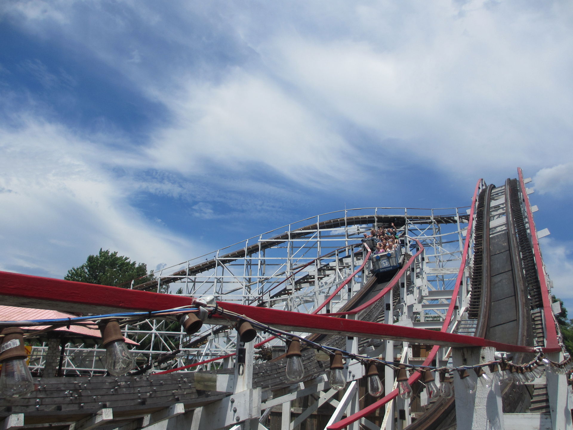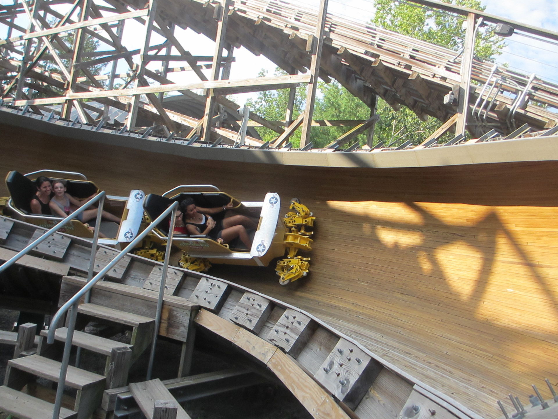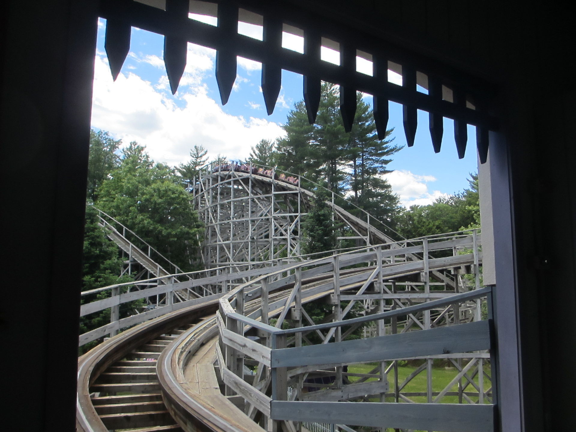 Für die hölzerne Note genießen wir eine wunderbare Fahrt auf Thunderbolt. Beim Cyclone ist die Queue leer und nach einer spaßigen Fahrt in der Frontrow entschließen wir uns, unsere Kräfte am Beginn der Tour nicht zu sehr zu vergeuden und uns rechtzeitig nach New Hampshire zu begeben, wo hoffentlich schon sehnsüchtig unser verspäteter Koffer mit den darin befindlichen Teva Sandalen für mich und dem Steckdosenadapter für das Laptop auf uns wartet.
