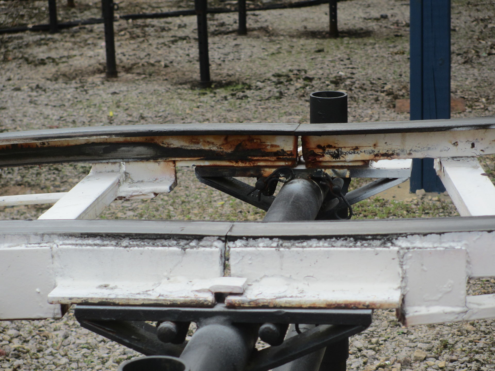 Als wir uns weitersuchend umsehen, entdecken wir die Station des Blue Streak, den Hauptgrund unseres Hierseins. Viel mehr als der Bahnhof ist von der Bahn bisher durch die Bäume nicht zu erkennen.