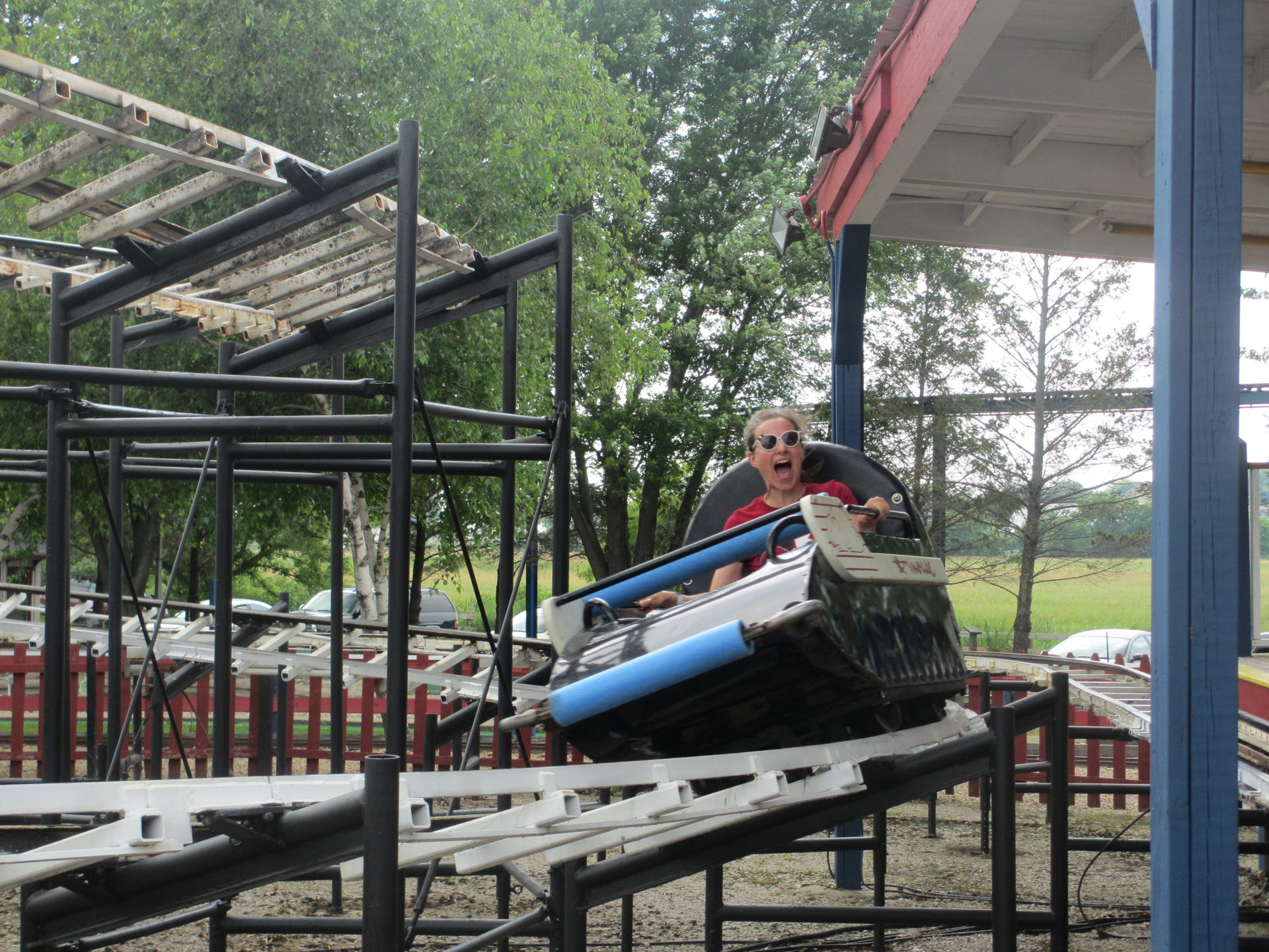 Der hier ansässige Altholzvertreter zeigt uns, was noch in ihm steckt. In der letzten Reihe sitzend freuen wir uns über eine schüttelnde und auswurffreudige Fahrt in dem Yankee Canonball.
