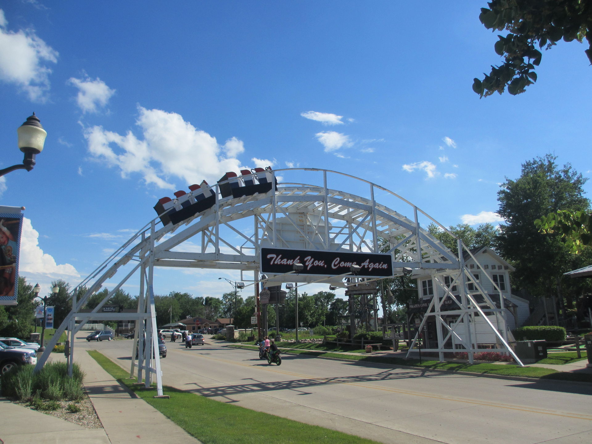 Vorbei an Truthähnen, Mäusen und Vögeln, die laufenderweise sehr unachtsam die Fahrbahn überqueren wollen, steuern wir ins landschaftliche Nirvana, an dessen Ende uns verwarzte Hütten mit zugenagelten Läden und verrostete und teilweise demontierte Fahrgeschäfte empfangen. Doch als wir die Autotür öffnen, schallt schräge Orgelmusik aus ungestimmten Pfeifen in unser Ohr, also werden wir diesen Ort, der seine Glanzzeiten vermutlich irgendwann vor über 75 Jahren hatte, doch etwas näher inspizieren.