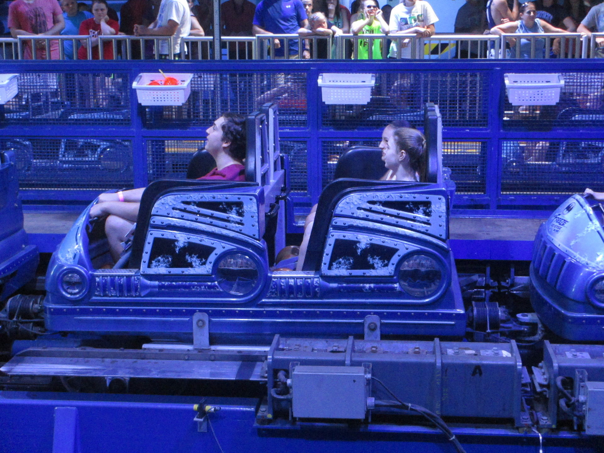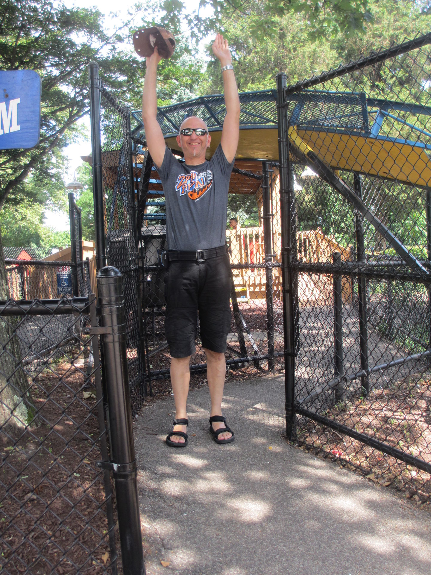 Hier ist es sonnig und heiß und wir machen uns ans Werk, unsere hier drei offen stehenden Rechnungen zu begleichen: Erstens wollen wir einen Six Flags Seasonpass kaufen, zweitens wollen wir verifizieren, ob Bizarro tatsächlich so schlecht ist, wie wir ihn in 2010 empfunden haben und drittens den Mind Eraser aus allernächster Nähe begutachten und uns den Vekoma Count gegen die Ohren schlagen lassen.