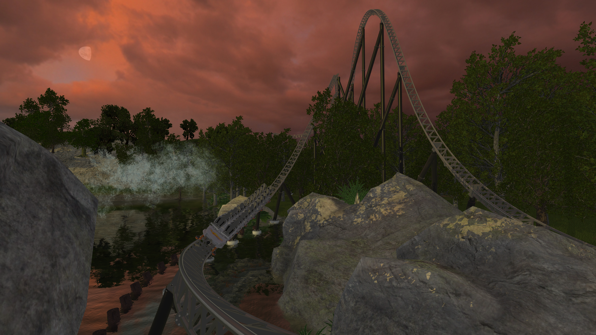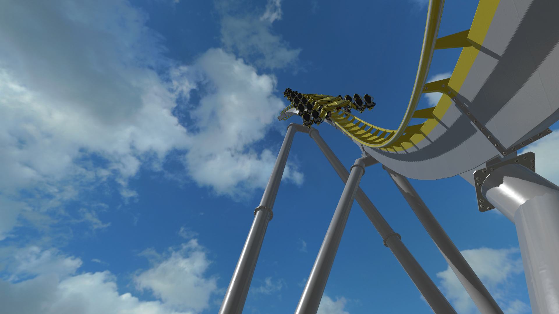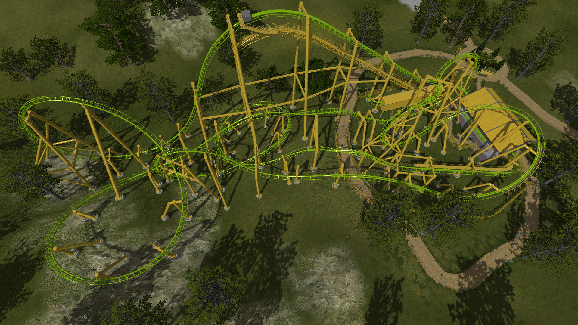 Danke! Ja, beim Diveloop merkt man ein bisschen, dass ich in gewisse Layout/Geschwindigkeits-Probleme geraten bin. Da gab es dann keine andere Lösung als diesen doch etwas seltsam geformte Diveloop zu bauen. Aber gut, ich glaub Vekoma hat schon schlimmeres gebaut