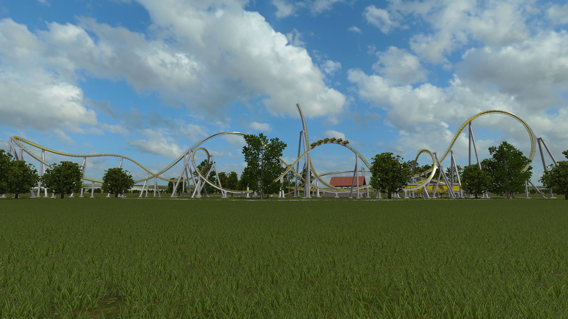 So, weiter geht es mit einem kleinen B&M Wingcoaster namens Swingflyer. Vermutlich werde ich nie wieder son Ding bauen, man kriegt einfach nur 'nen Rappel wegen der seitlichen g's. Mir ist es auch relativ schwer gefallen, Elemente einzubauen, die es vorher so noch nicht gab. Irgendwie sind so Wingcoaster nicht mein Ding. Jedenfalls wollte ich mal - manch einer mag die Quelle der Inspiration erkennen - einen Triplelaunch bauen, obwohl ich circa gar nicht scripten kann. Das hat dann zum Großteil auch der Scriptgenerator übernommen, sodass nur noch ein paar Kleinigkeiten geändert werden mussten. Dennoch ist das Script nicht wirklich ausgereift und produziert crashes, wenn man ein bisschen an der Technik der Bahn rumfummelt. Darüber bitte hinwegsehen
