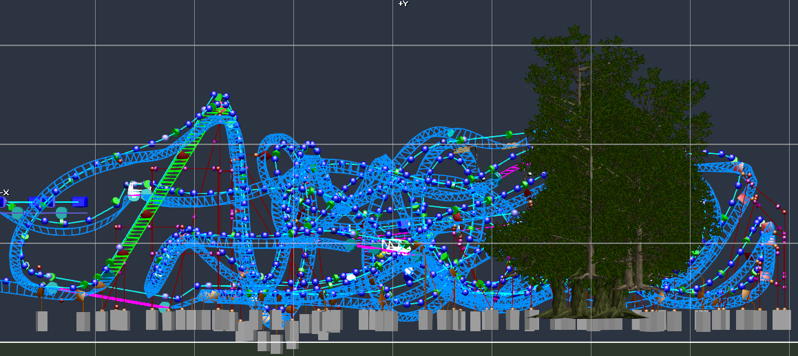 ... Im neuen Jahr geht es aber erst mal mit meinem letzten Coaster weiter. Dabei handelt es sich um einen Mack Hypercoaster von 60 Metern, welcher vor allem in der ersten Hälfte einiges an G-Kräften bereithält und so der wohl intensivste Mack Coaster ist, den es bisher gibt. Eigentlich sollte das Ding nicht ganz so heftig werden, aber ich wollte diese seltsame Cobraroll nach dem ersten Camelback gerne bauen. Dabei ist mir aufgefallen, dass das nur mit sehr hohen Kräften machbar ist. Und dann musste halt der Rest vom Coaster dazu passen... Wie immer alles handgebaut, ich scheue mich noch ein wenig davor, auf FVD umzusteigen.