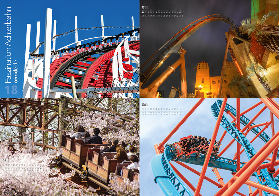 ab sofort könnt ihr den onride-Kalender Faszination Achterbahn 2018 bei uns bestellen. Auch in diesem Jahr wieder in Übergröße für perfekte Entfaltung der Bilder. Hier erfahrt ihr mehr über die Wettbewerbe. Eine Vorschau gibt es sobald diese fertig ist. Solange profitiert ihr vom exklusiven Vorbestellerpreis!