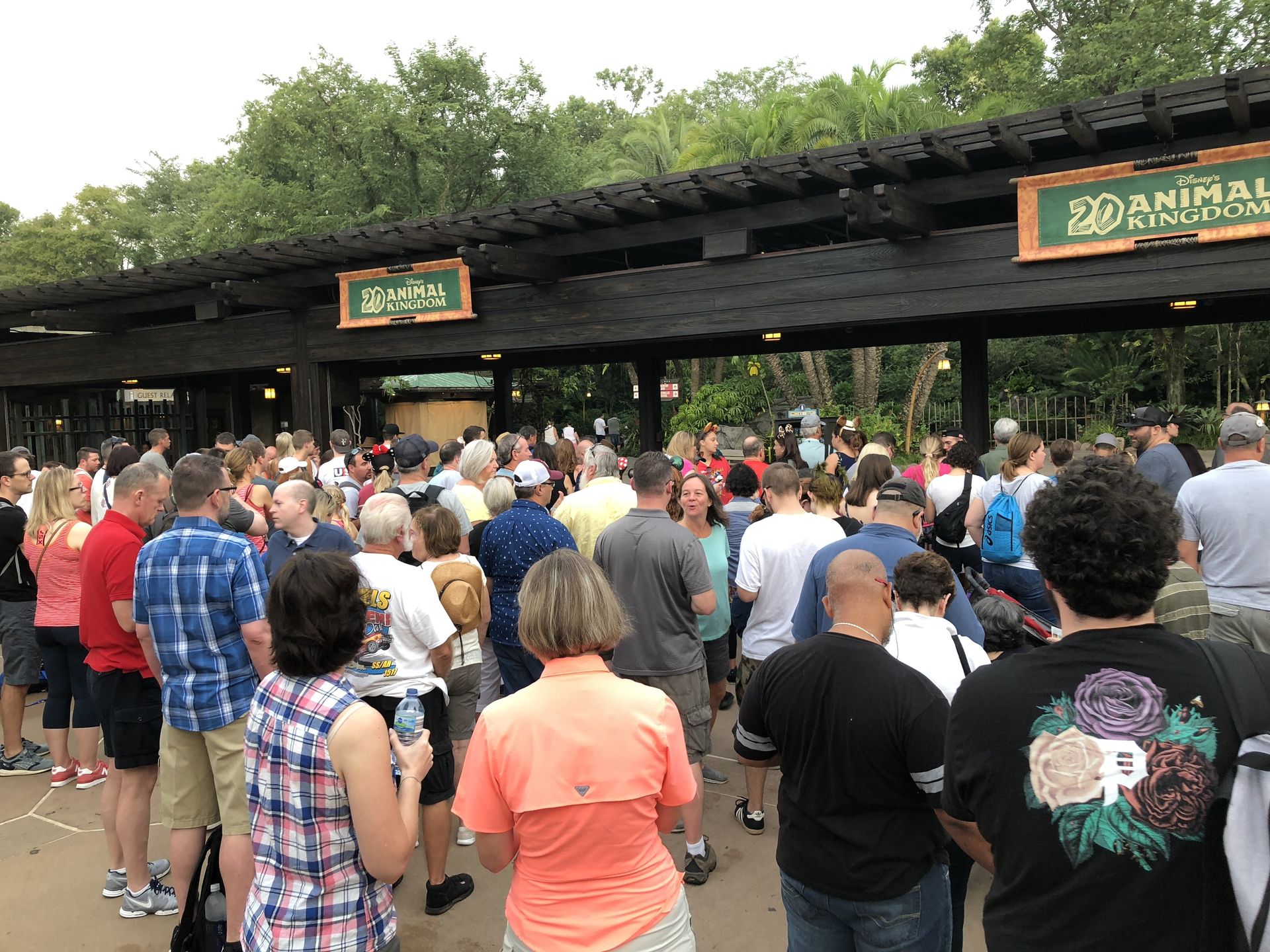 08:25 Uhr: Wir werden in den Themenbereich geführt und die Cast Member bilden eine Schlaufe, die – so weiß ich aus Erfahrung – bald bis zum Lion King Showgebäude und wieder zurück geht. Noch ist es aber ein kleines Schläufchen.