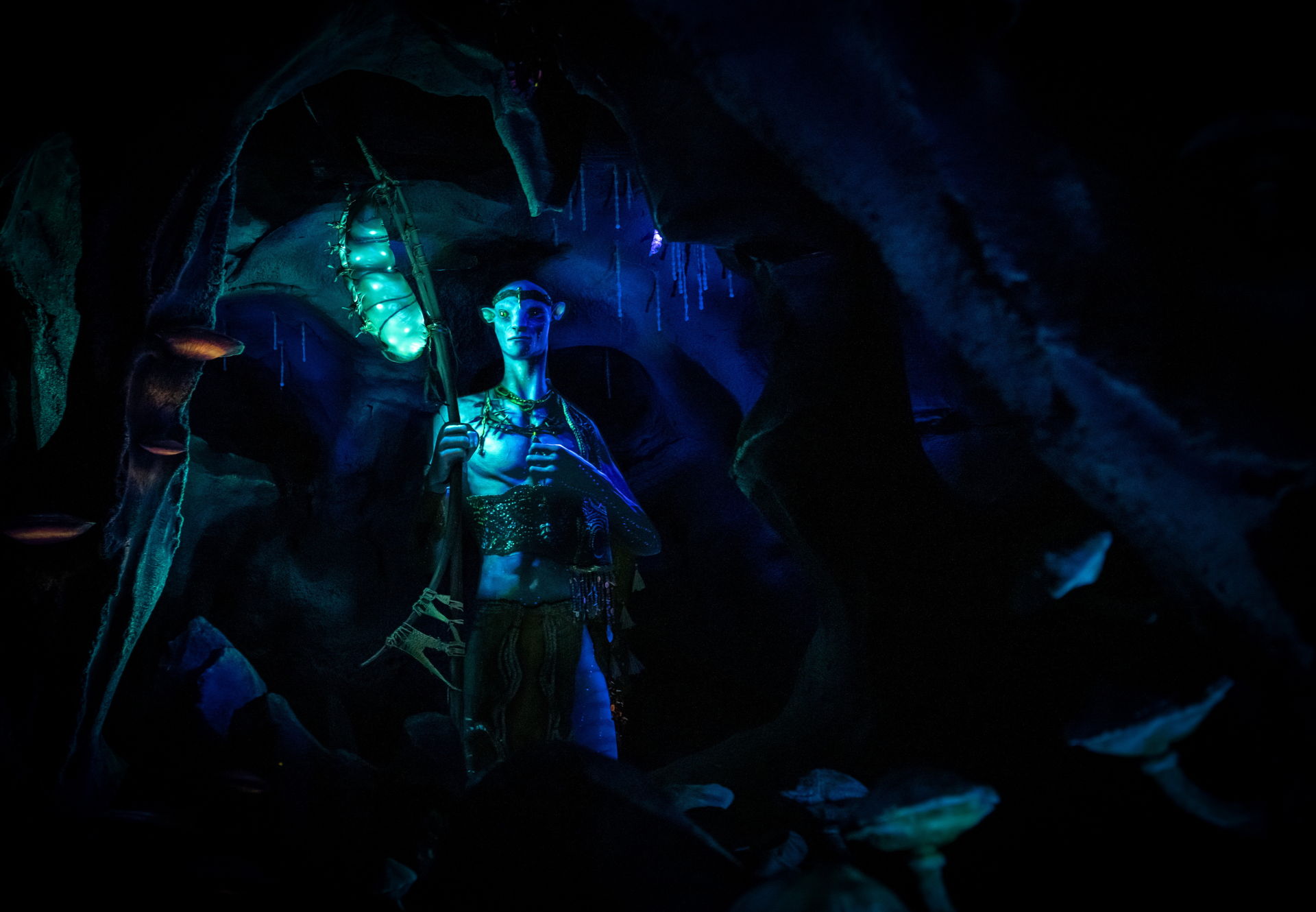 Diesem Na'vi Krieger fällt die ausgesprochen undankbare Rolle der zweitbesten Animatronic des Rides zu.