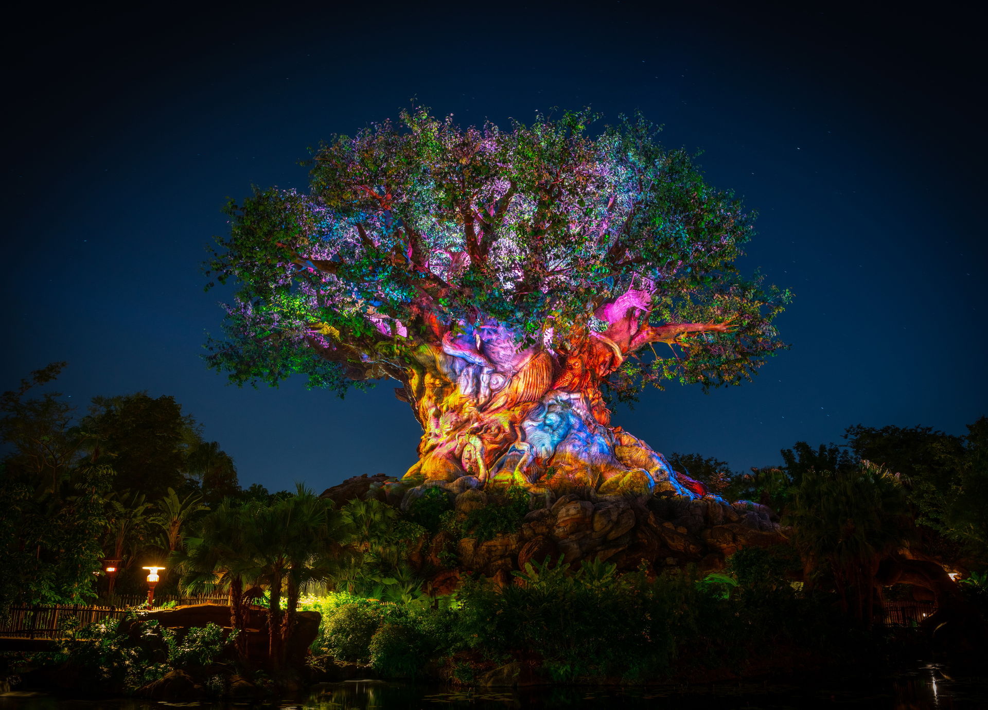Der Tree of Life wird abends - auch von hinten - angestrahlt.