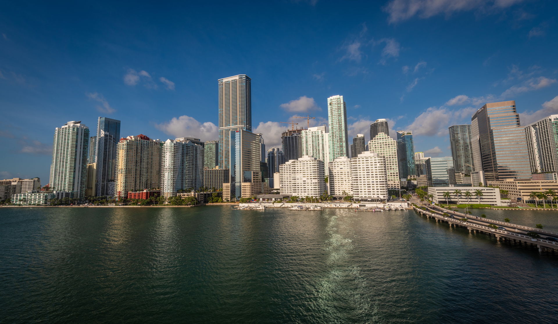 Die Skyline von Brickell vom Brickell Key aus gesehen