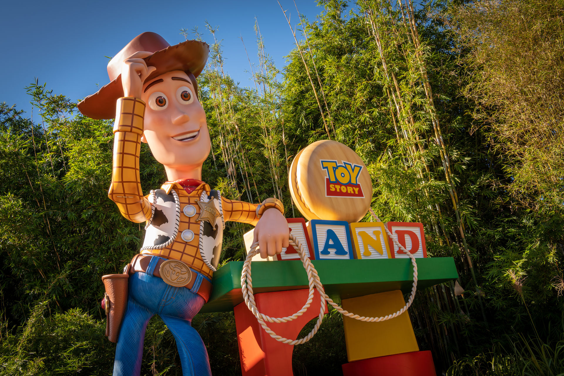 Sheriff Woody begrüst die Gäste des neuen Bereich, trotz vergifteten Wasserlochs und einer Schlange im Stiefel