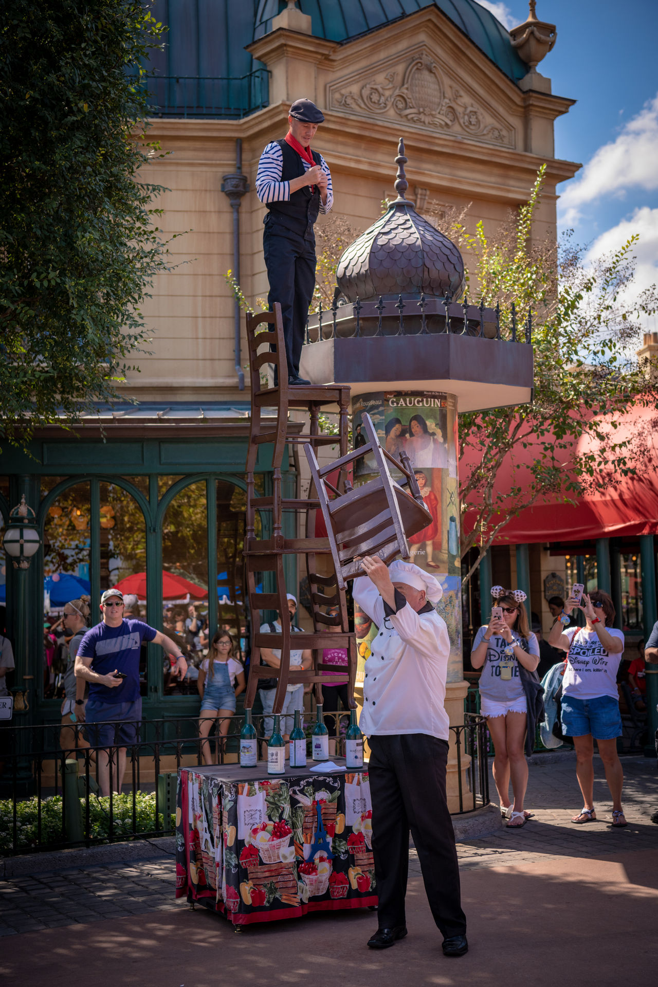 So sind sie, die Franzosen. Wenn sie nicht gerade gelbe Westen tragen, stapeln sie umständlich Stühle und trinken Wein.