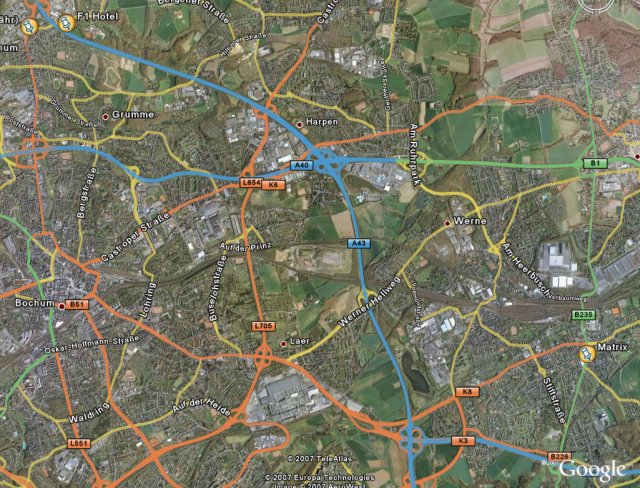 Sieht zwar recht weit bis zur Matrix aus, sollen aber laut map24 nur 15 Km sein. Und da die Fahrt über Autobahn geht auch nur 12 Minuten.