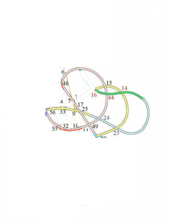 Und nun können wir anfangen, es "digital zu entwirren". Dazu hab ich hier im unteren Bereich eine Schleife entfernt und im oberen Bereich auch ein paar Kurven abgekürzt. Wenn man diese Methode anwendet, um herauszufinden, ob und wie viele Knoten vorliegen, muss man nur aufpassen, dass man der abgekürzte Weg keine andere Strecke "umschließt".